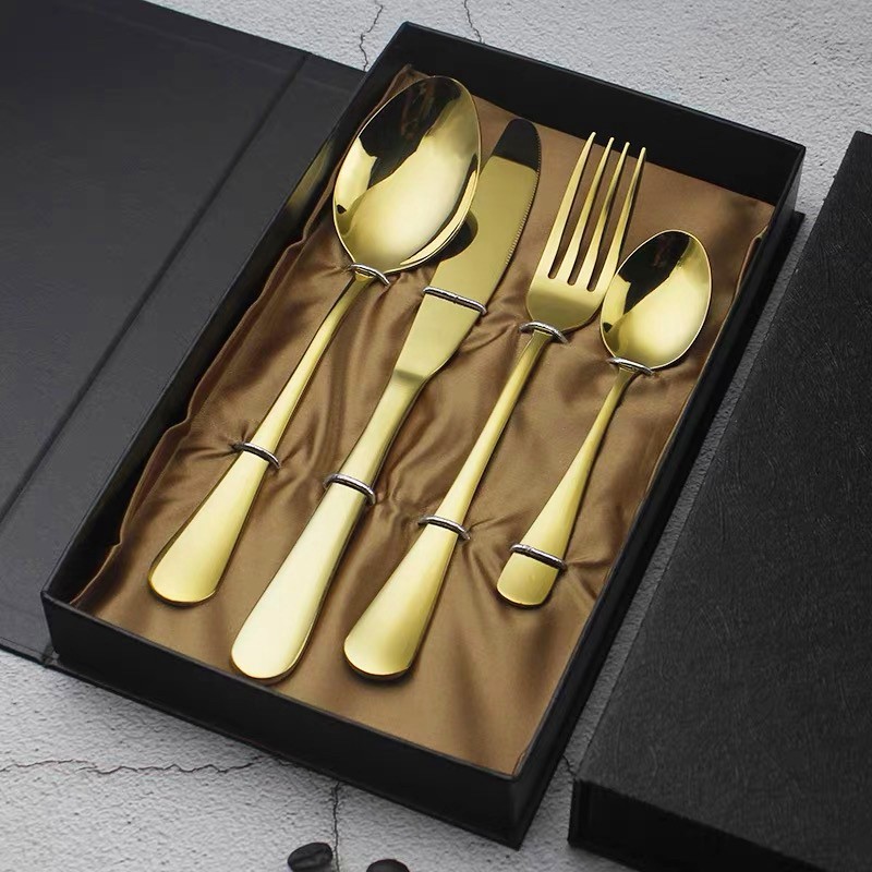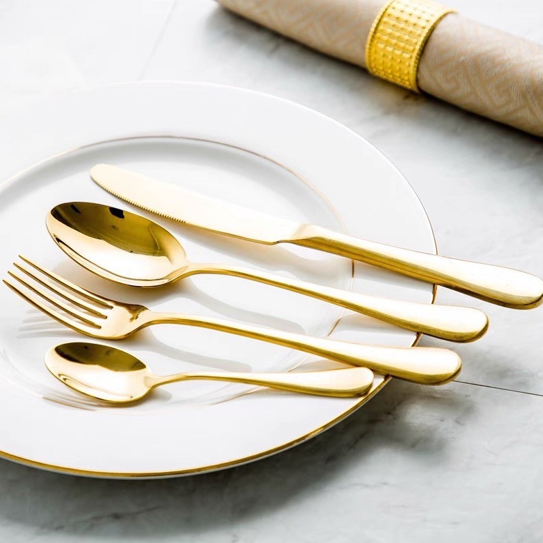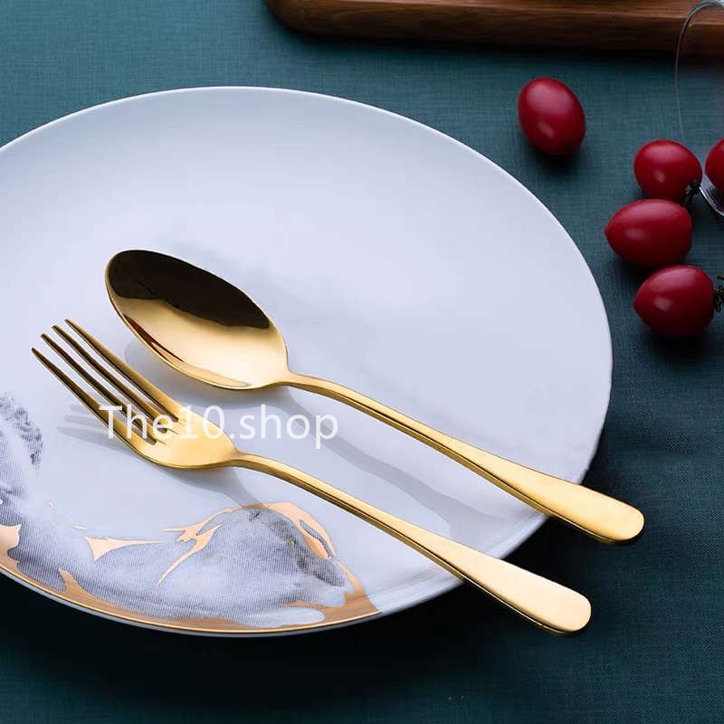 สวยมาก ช้อนส้อม ทอง สแตนเลส มีดสเต็ก สไตล์ยุโรป ยอดฮิต รุ่นขายดี 21135 The10shop.