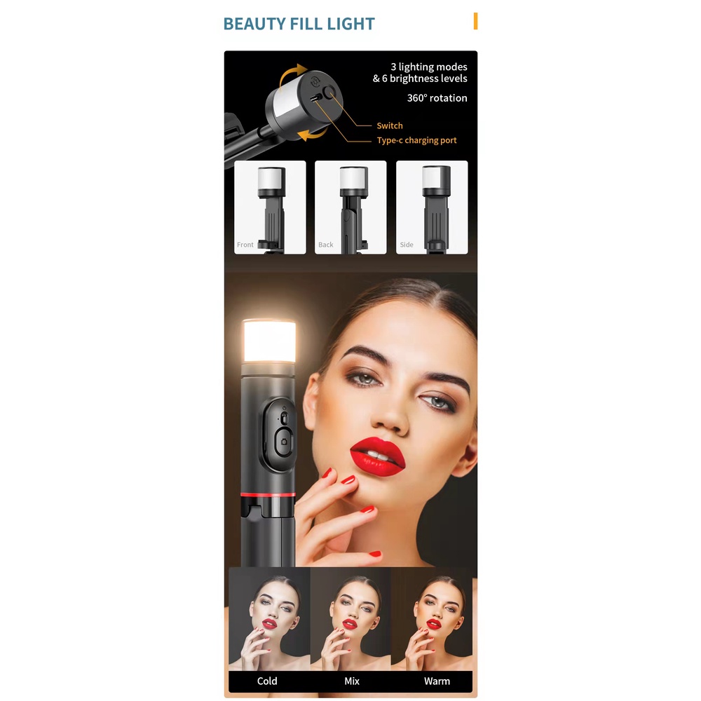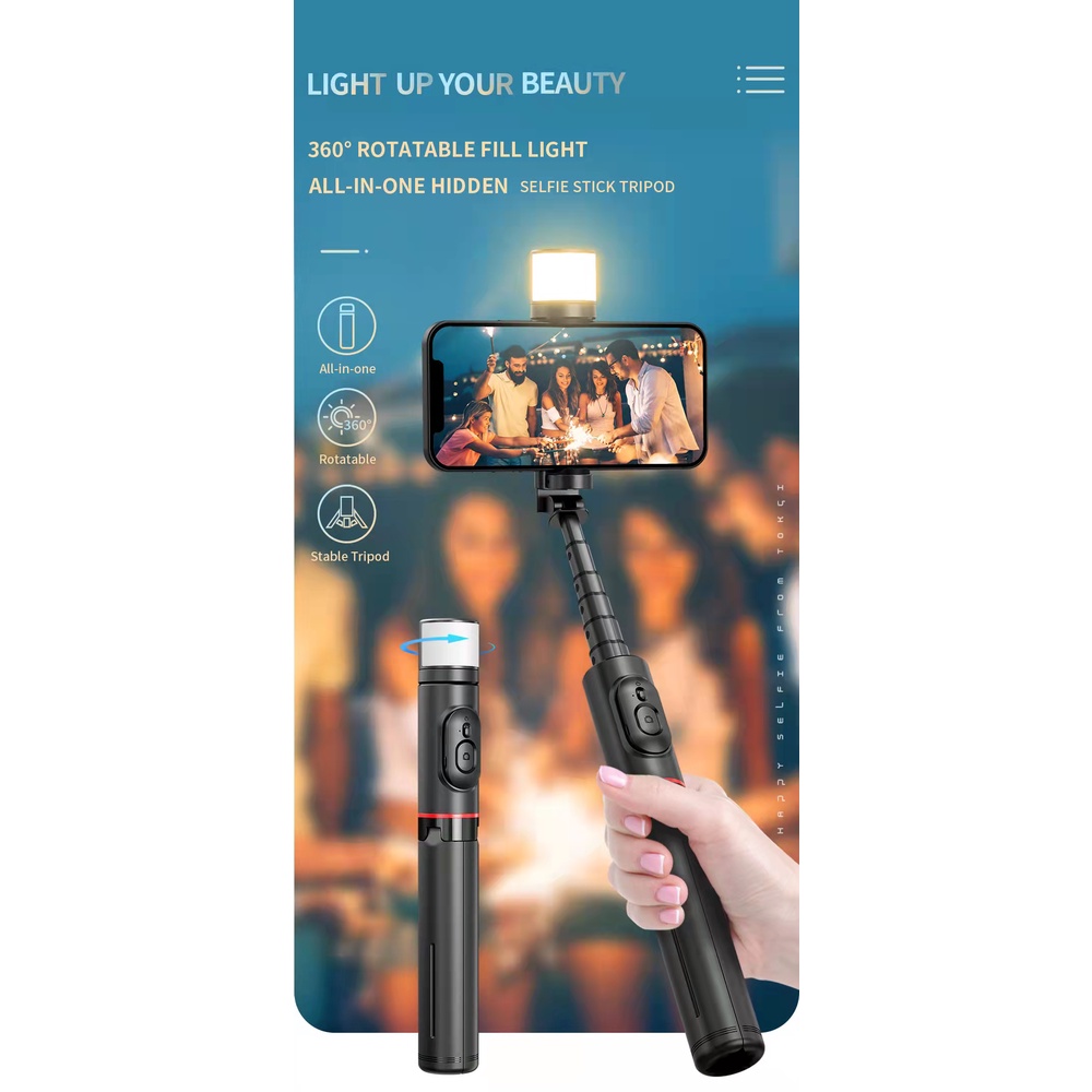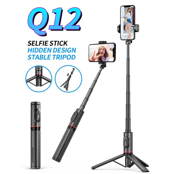 มีของพร้อมส่ง!ม้เซลฟี่มาใหม่ล่าสุด Q12sไม้เซลฟี่มีไฟไม้เซลฟี่ขาตั้งโทรศัพท์มุนได้ 360 °พร้อมรีโมทบลูทูธ ไฟ LED รุ่น Q12s