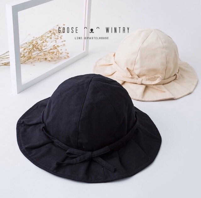 พร้อมส่ง! หมวกบักเก็ตผ้า ผูกโบว์ สไตล์เกาหลี (มี 5 สี)