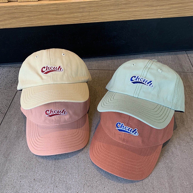 พร้อมส่ง ! หมวกแก๊ปสีพื้น ปัก Chcuh สีโทนธรรมชาติ