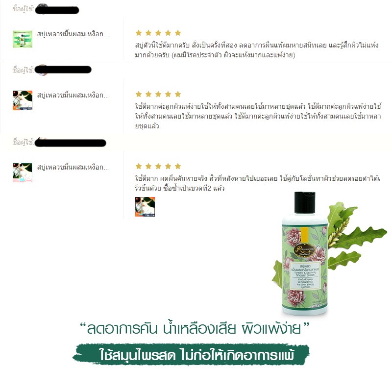 สบู่เหลวขมิ้นผสมเหงือกปลาหมอขนาด 280 มิลลิลิตร ช่วยลดเม็ดผดผื่นคันสำหรับผู้ที่น้ำเหลืองไม่ดีพุพองเป็นแผล