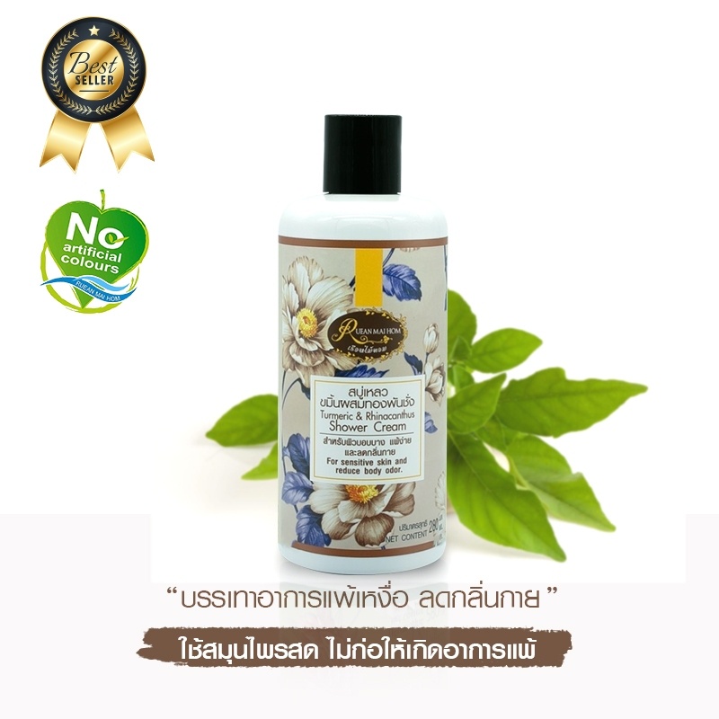 สบู่เหลวขมิ้นผสมทองพันชั่งขนาด 280 ML. รักษาอาการผื่นคัน ผิวแพ้ง่าย แพ้เหงื่อ เป็นผดผื่น เรือนไม้หอม