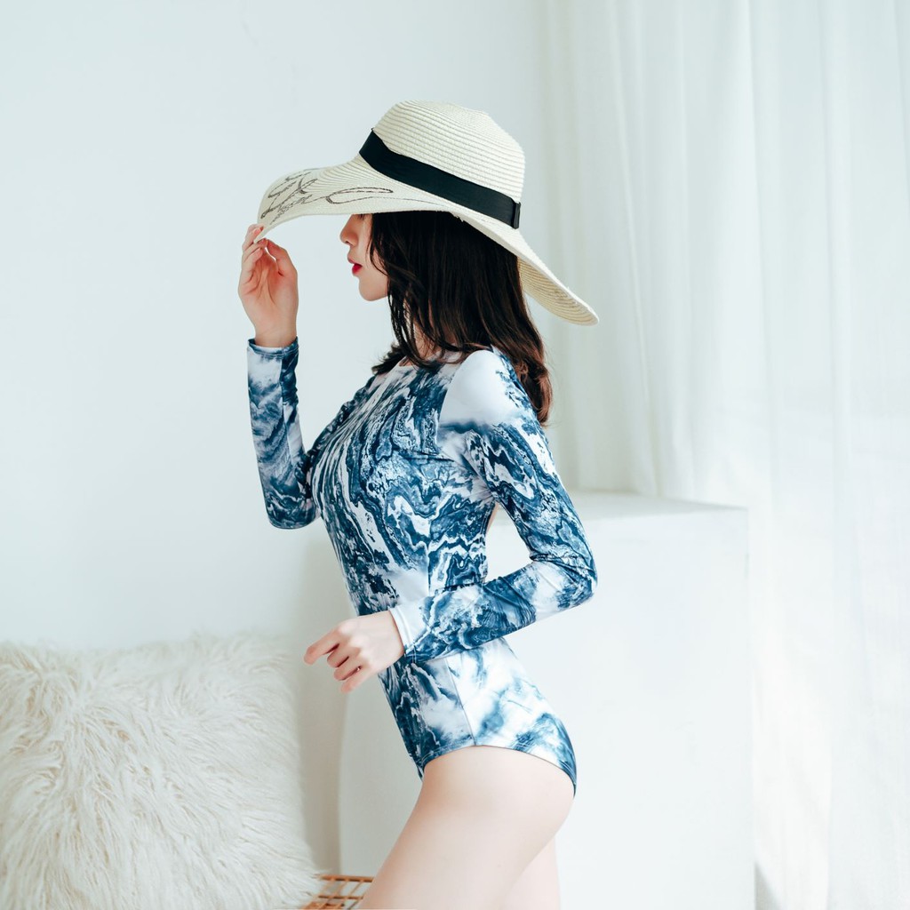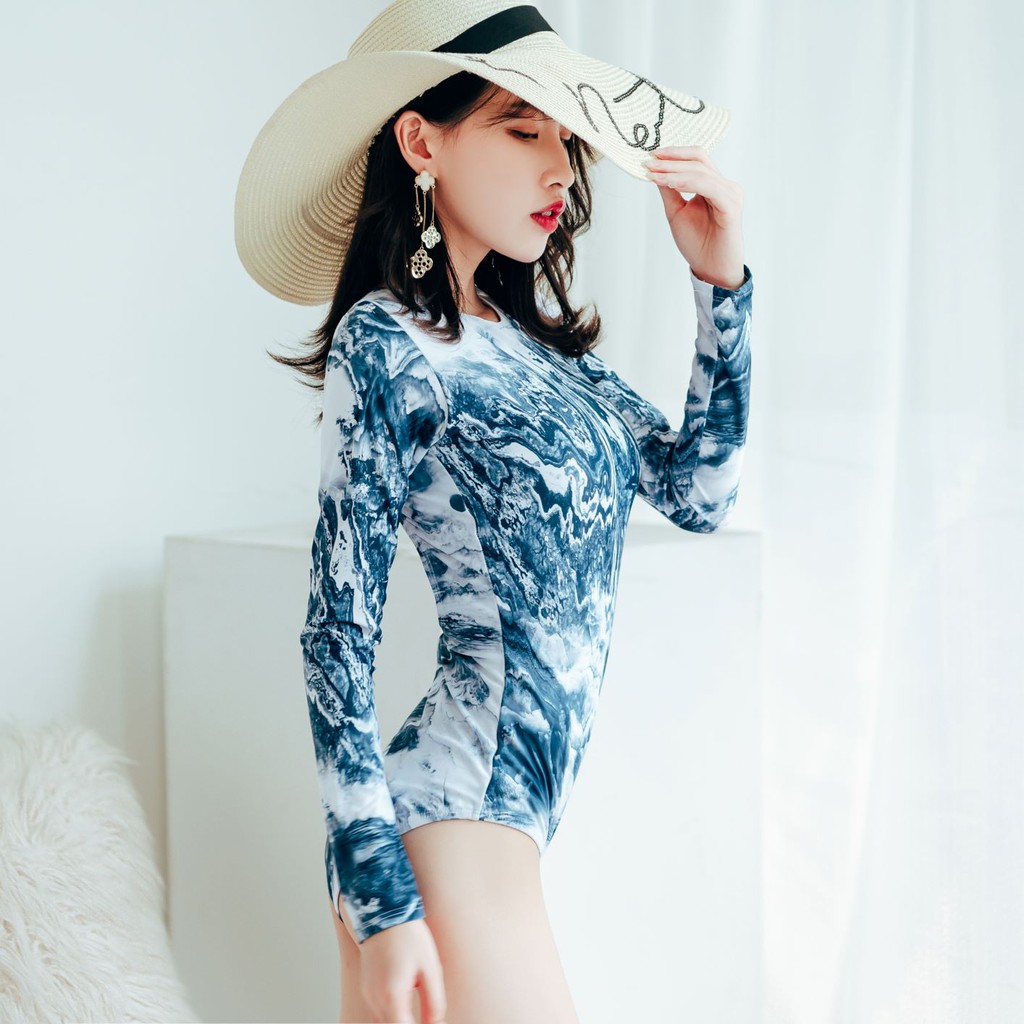 MingYuan ชุดว่ายน้ำวันพีซ แขนยาว แฟชั่นสำหรับผู้หญิง