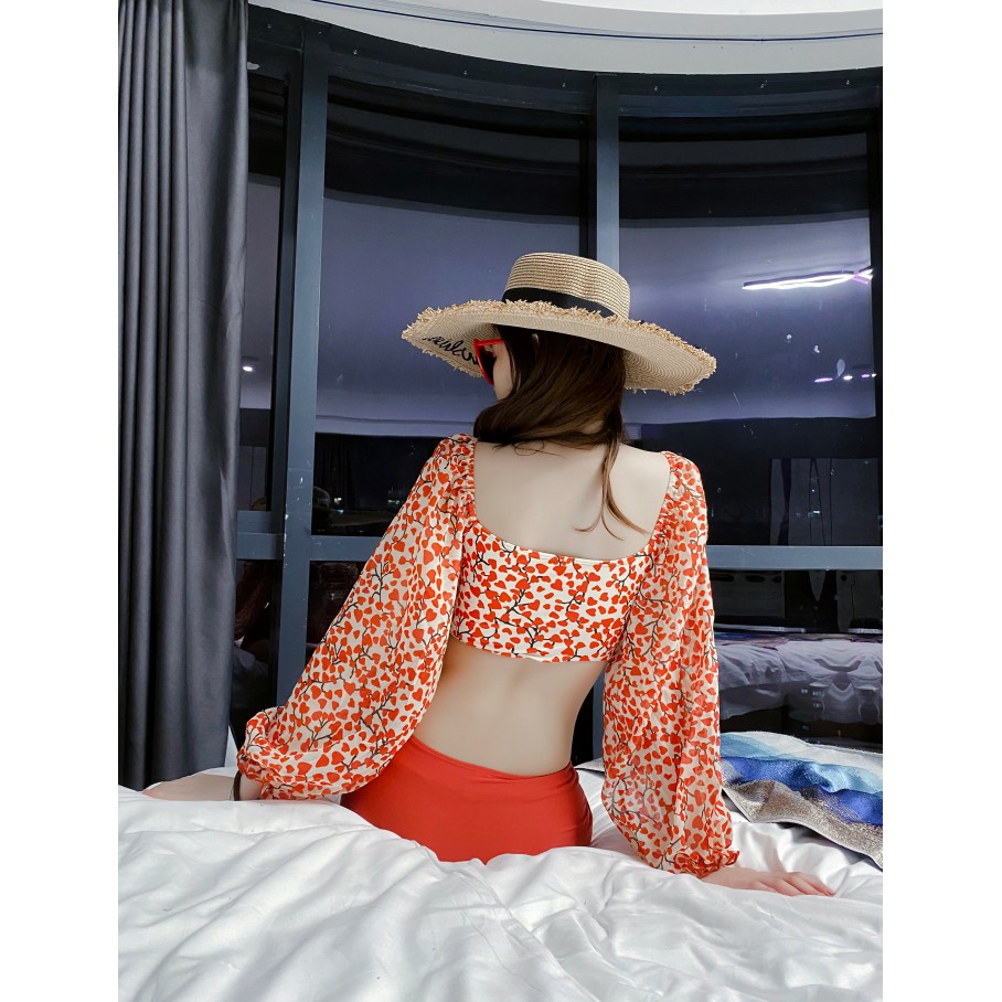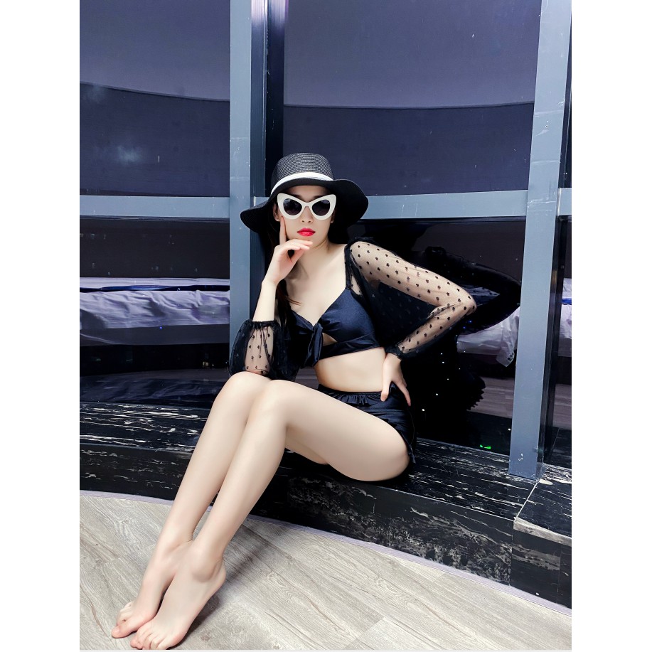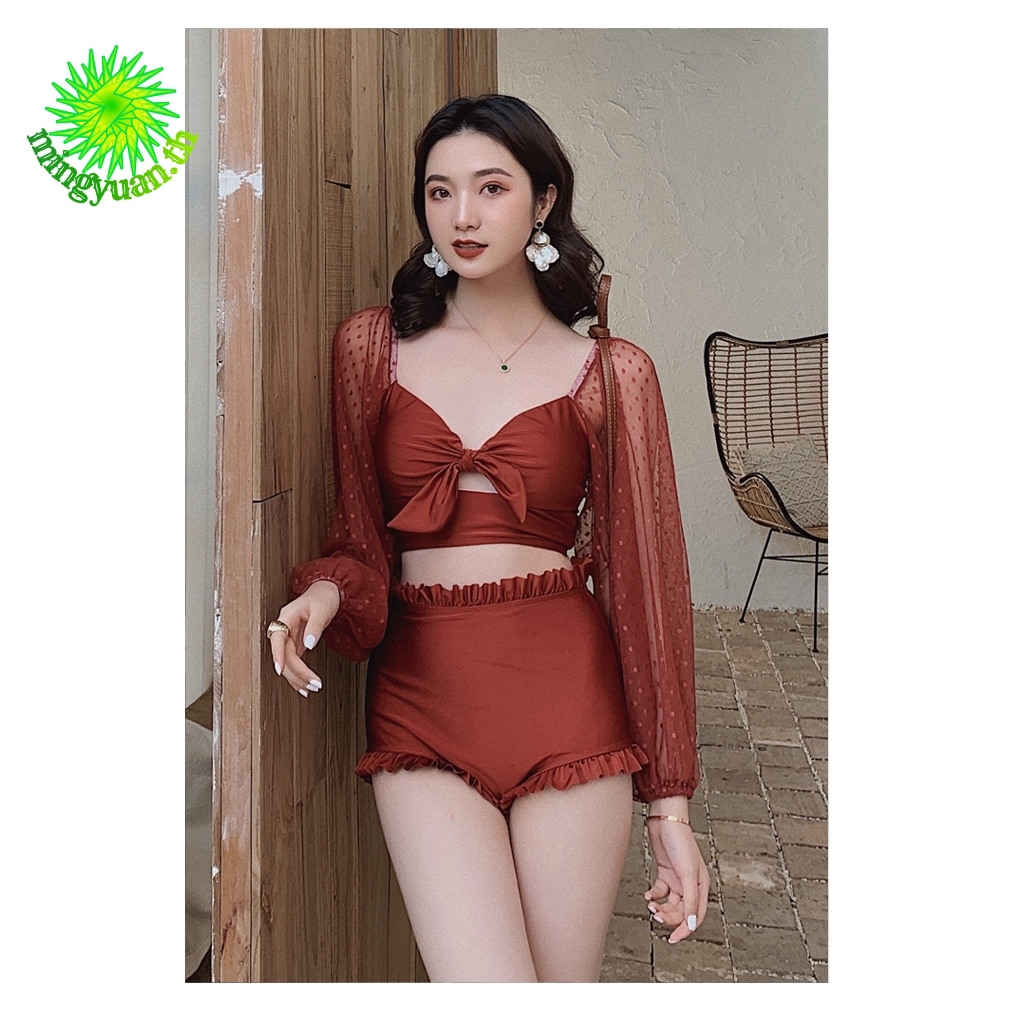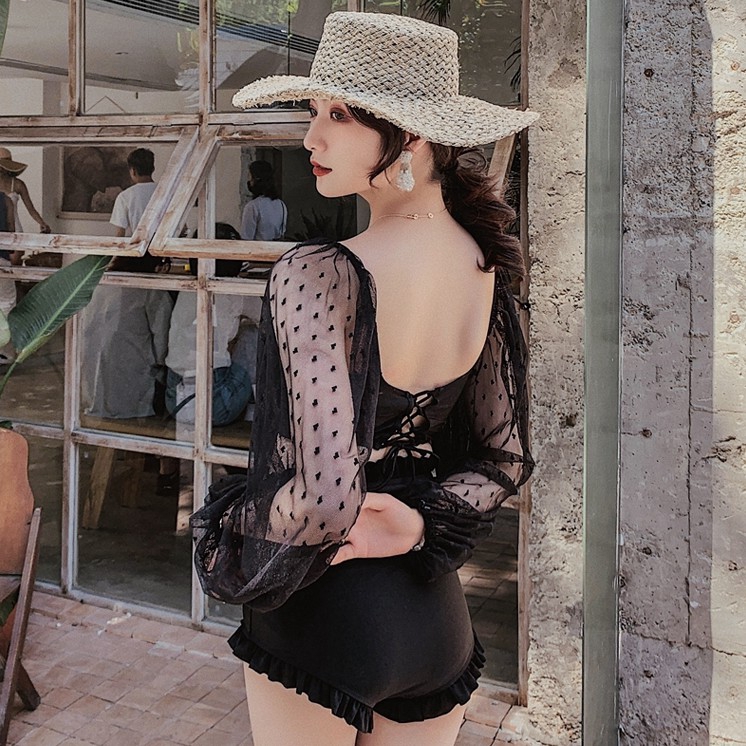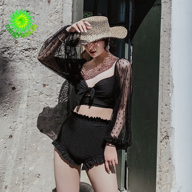 ชุดว่ายน้ํา แขนยาว แต่งลูกไม้ สองชิ้น สําหรับผู้หญิง M-3XL