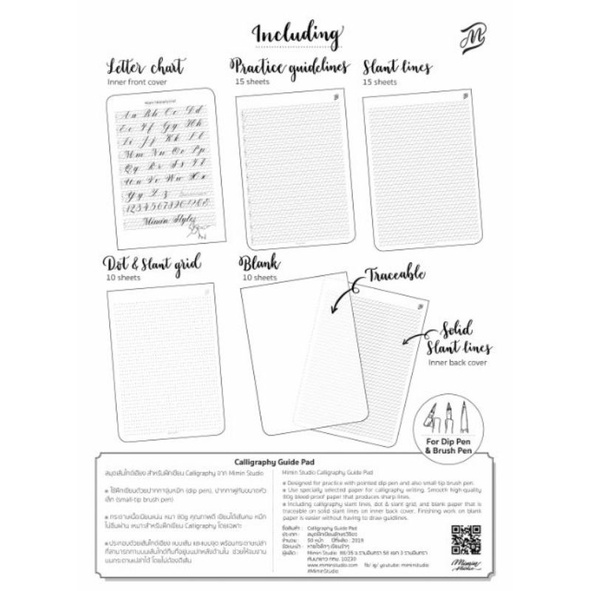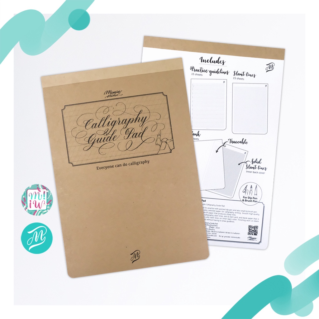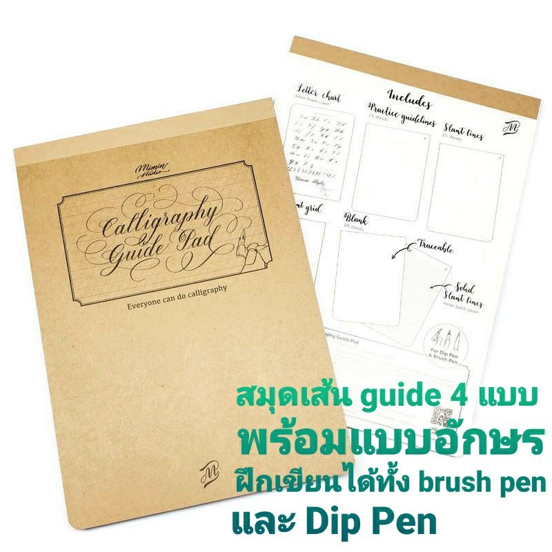 สมุดเส้นไกด์ ฝึกเขียนอักษร Calligraphy guide pad 4in1 โดย mimin studio กระดาษดีมาก