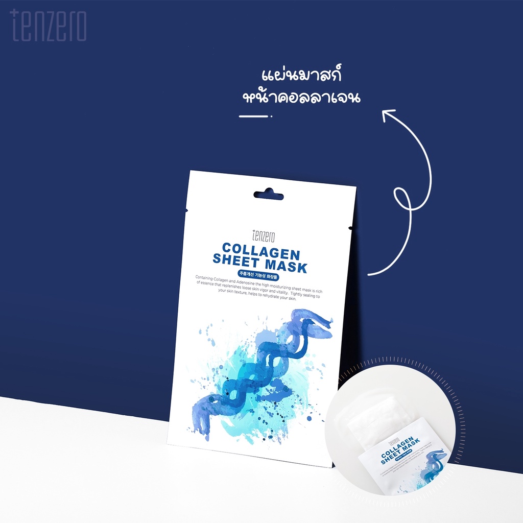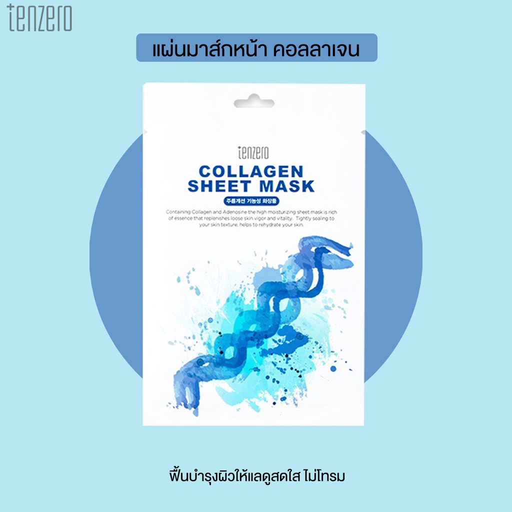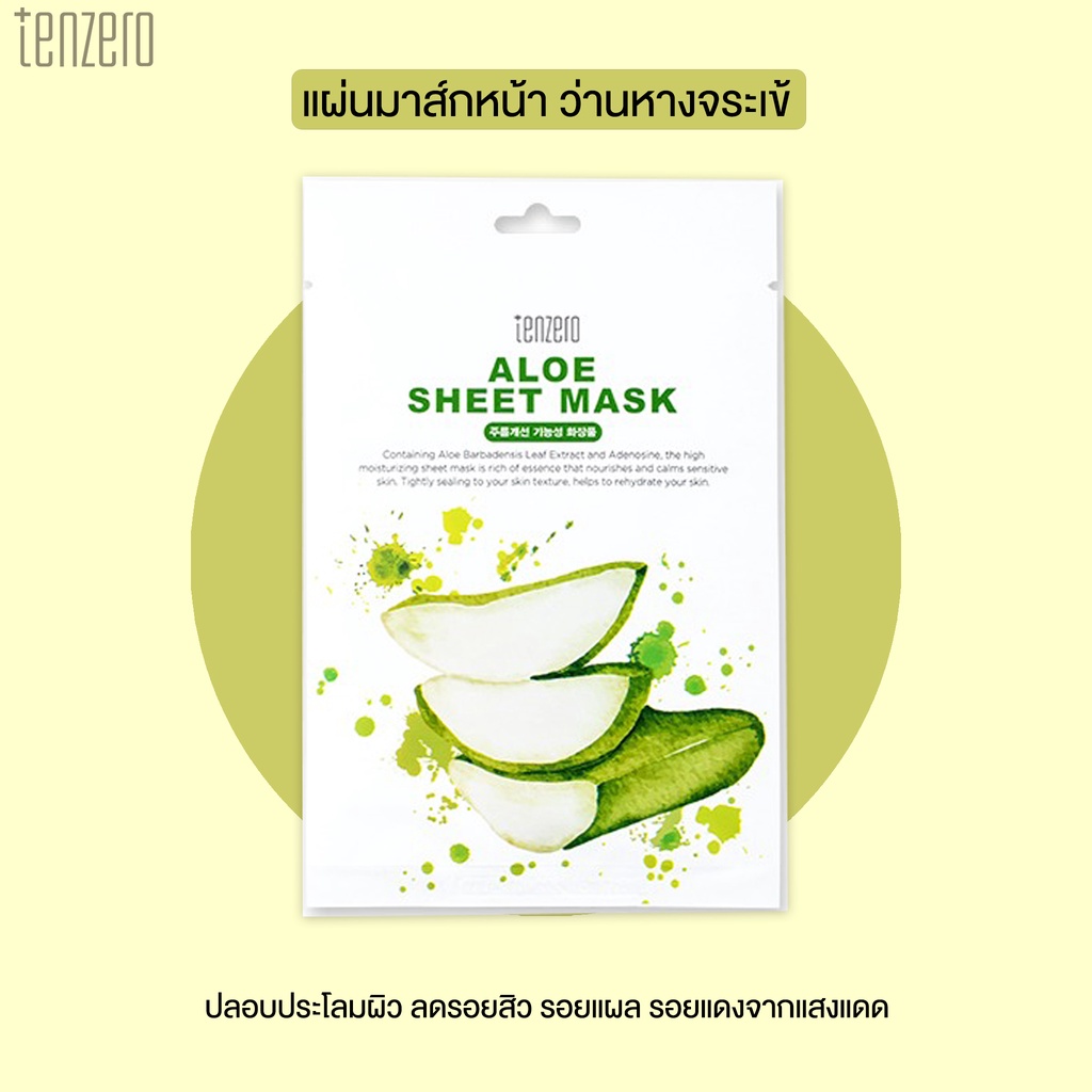 TENZERO Aloe Sheet Mask 25ml/Collagen/Green Tea/Hyaluronic Acid/Royal Jelly/Snail/Vitamin