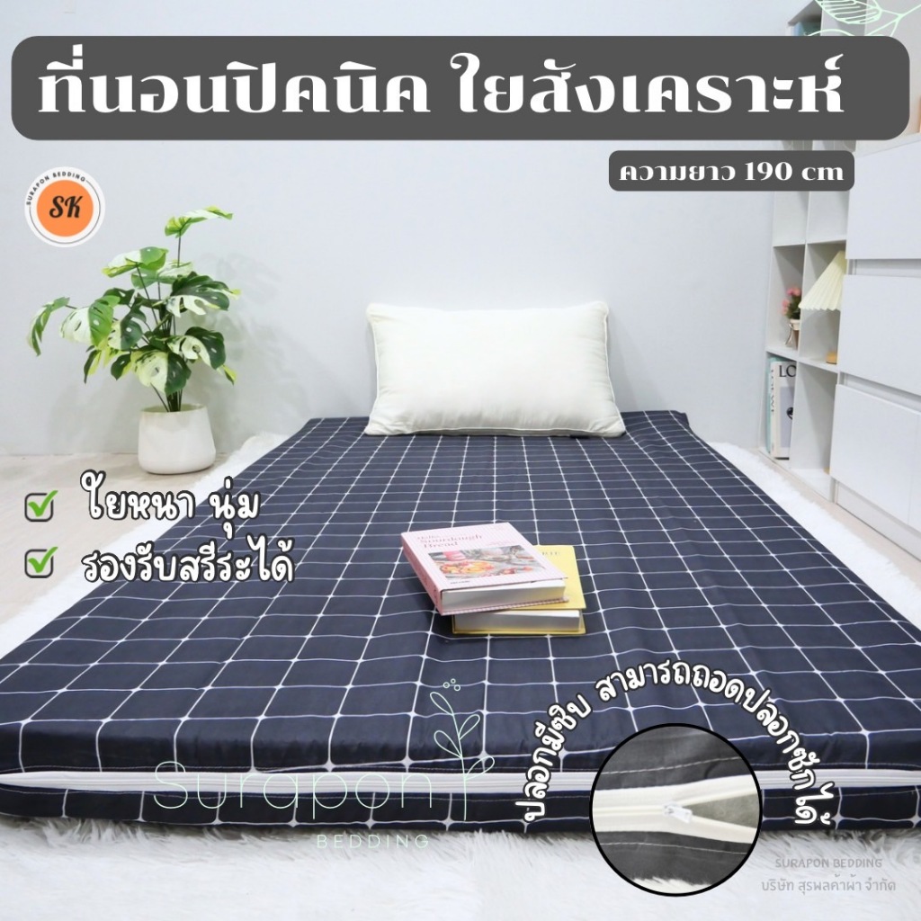 Surapon : ที่นอนปิคนิค 🌙 (Mattress) 3.5 ฟุต ใยหนา 500 กรัม พร้อมปลอกถอดซักได้ (ที่นอนรุ่นประหยัด)