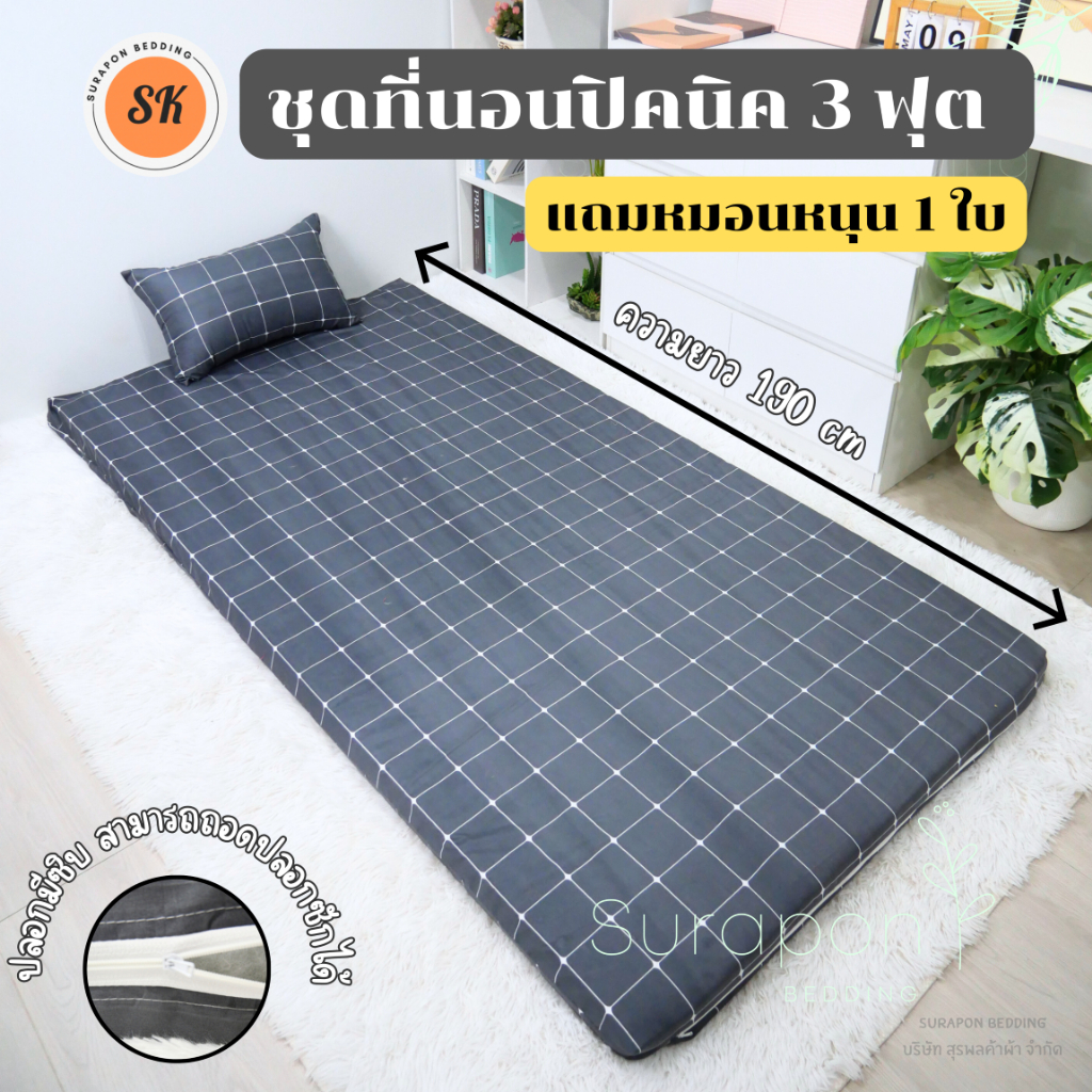 Surapon : ชุดที่นอนปิคนิค 3 ฟุต ใย 500 กรัม แถมหมอนกลางยัด 1 ใบ ผ้า Microtex ผ้าเนื้อนุ่ม
