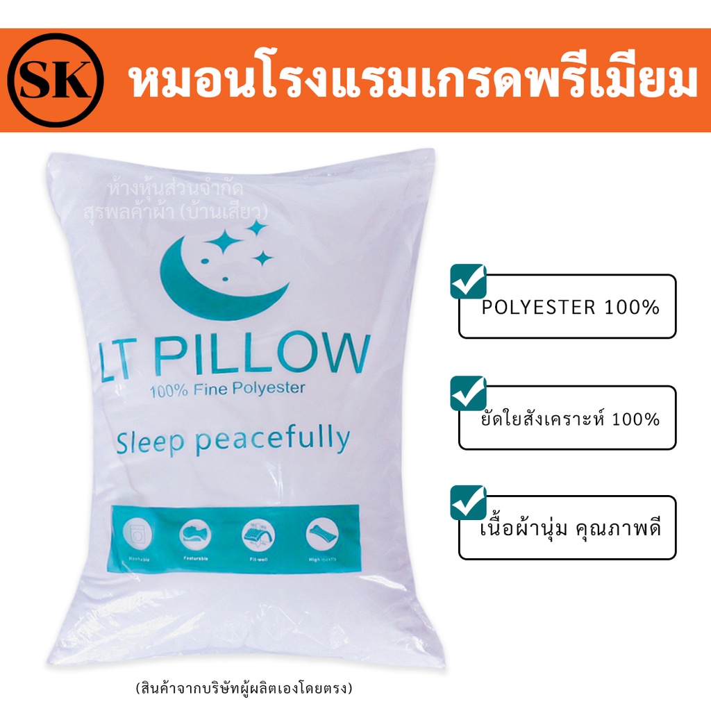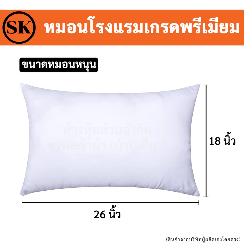 หมอนหนุนขาว ใยสังเคราะห์ขาว 100 % หมอนหนุนรุ่น Sweet Dream สีขาว 16x25นิ้ว
