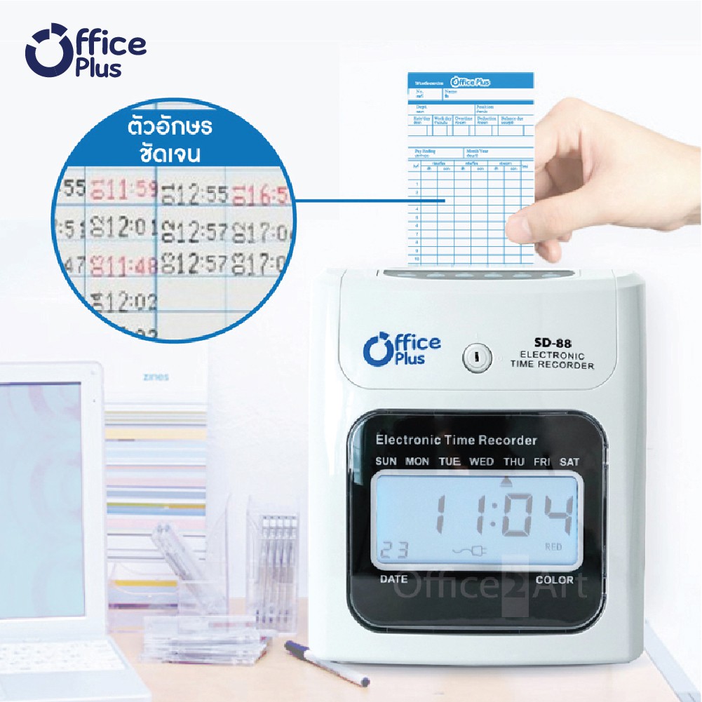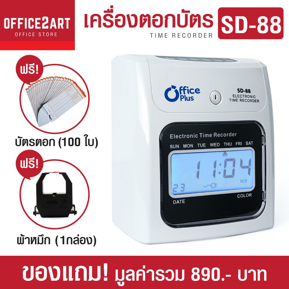 เครื่องตอกบัตร เครื่องตอกเวลา Office Plus SD-88 ฟรี!!! บัตรตอก 100 ใบ + ผ้าหมึก OfficePlus 1 กล่อง