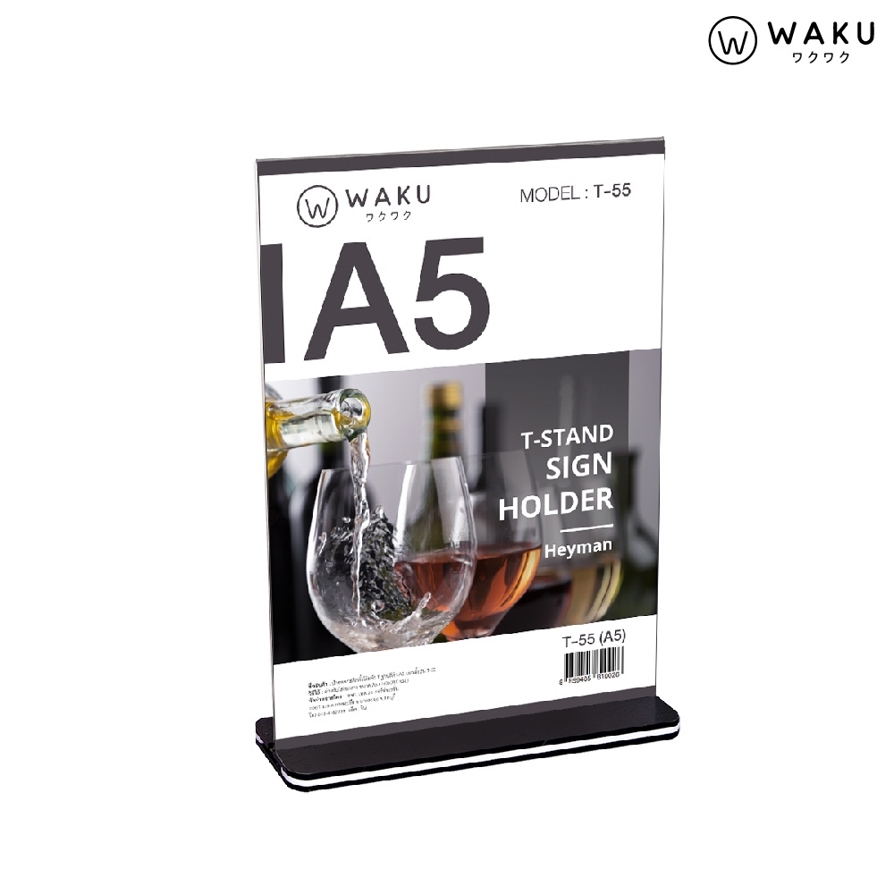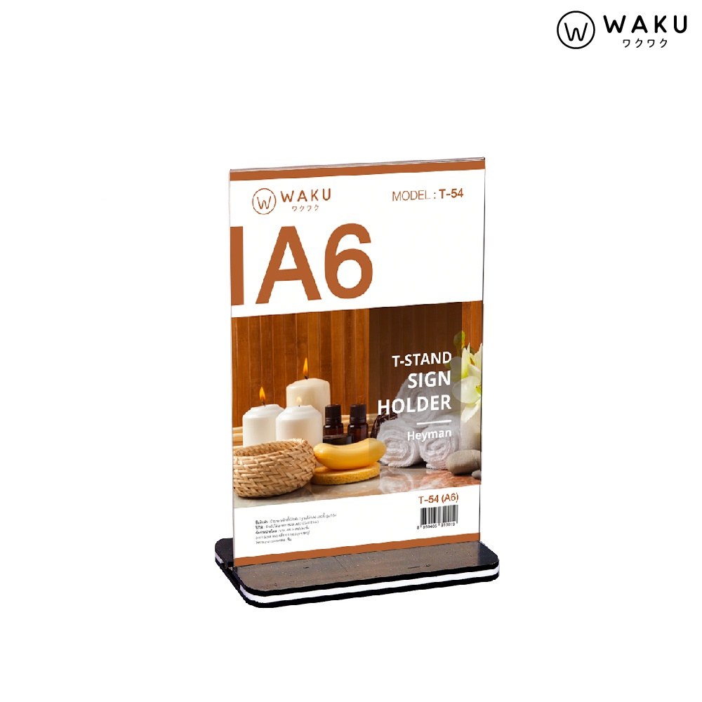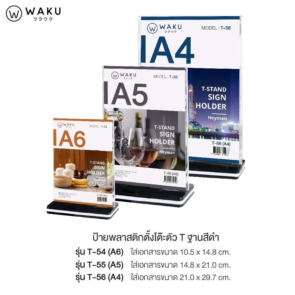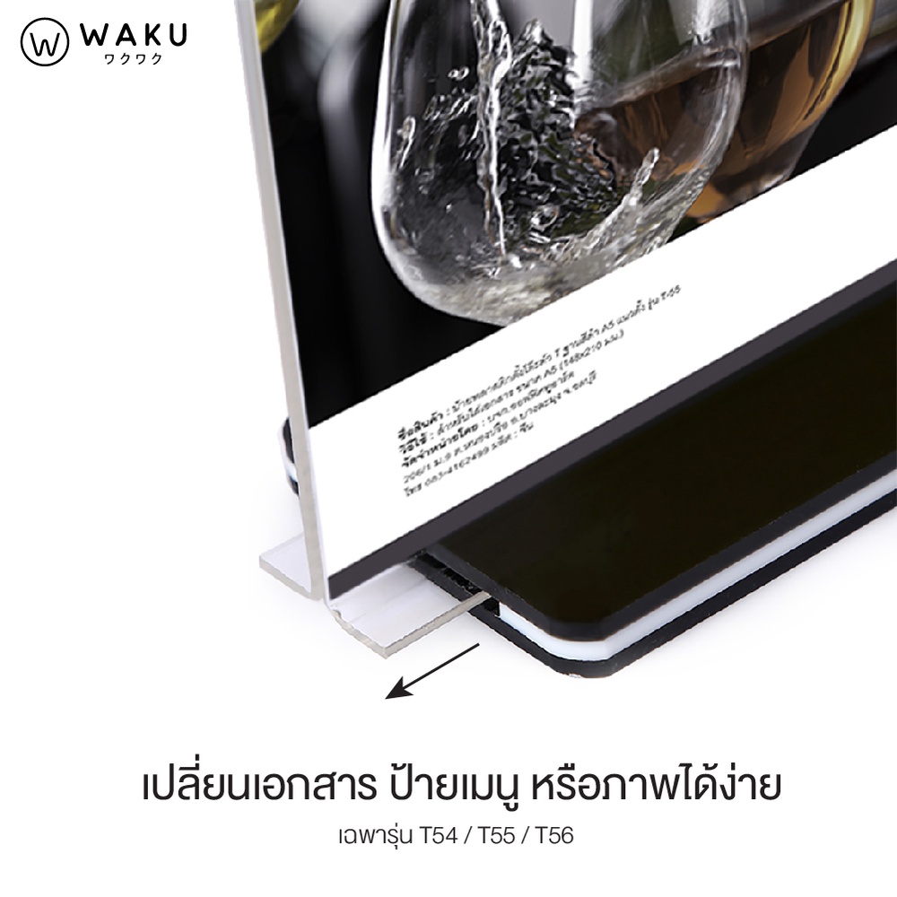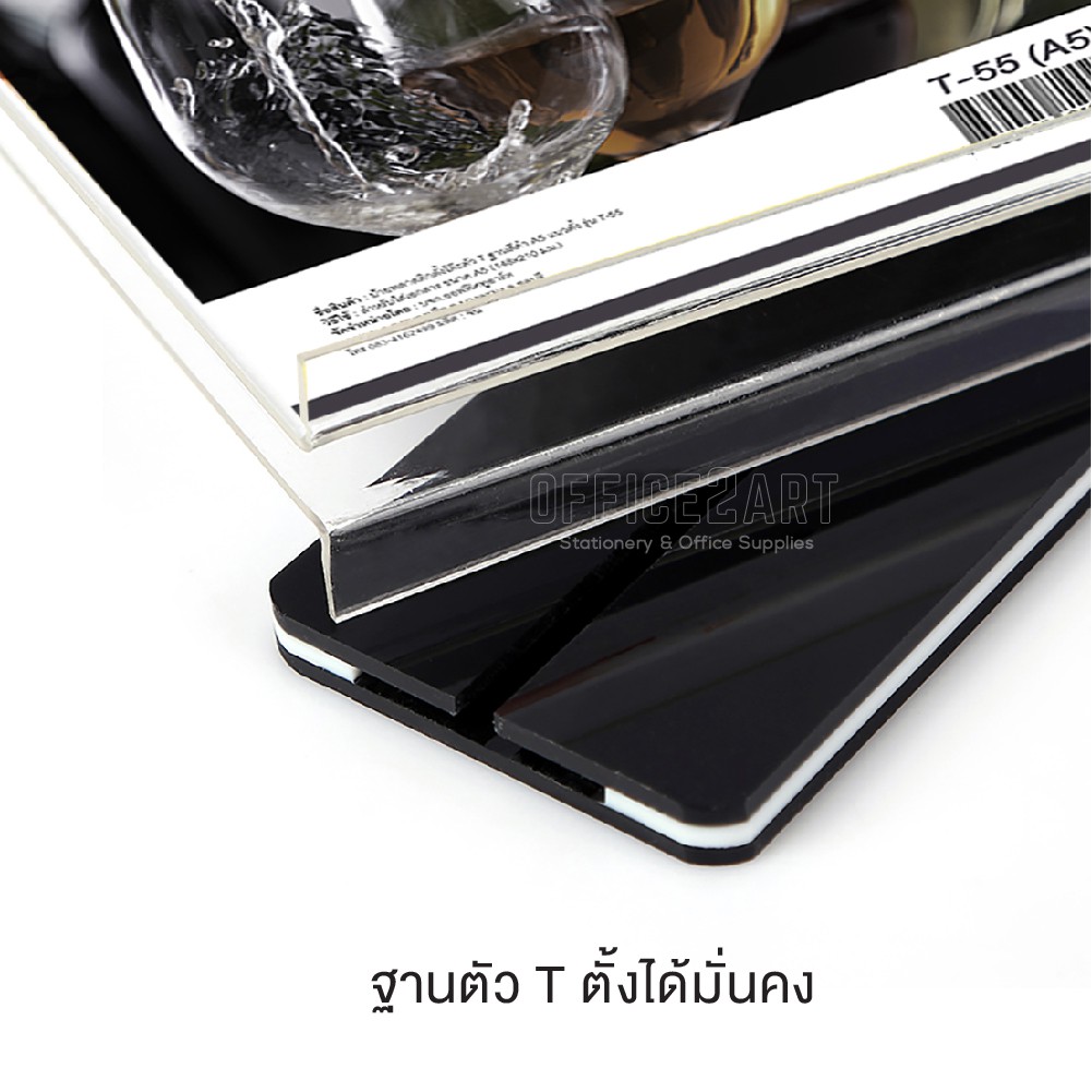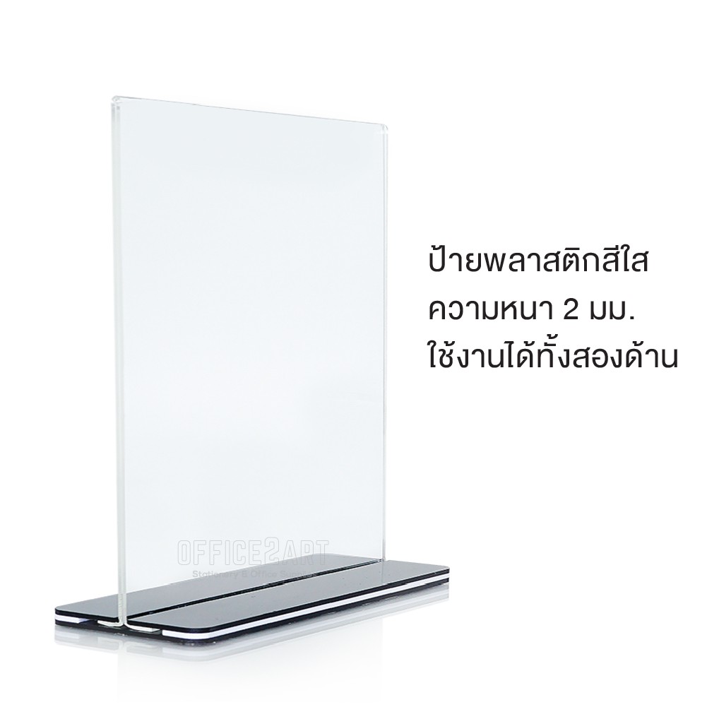 ป้ายอะคริลิค ป้ายตั้งโต๊ะ A4 A5 A6 แนวตั้ง รูปตัวที T ฐานสีดำ รุ่น T54/T55/T56