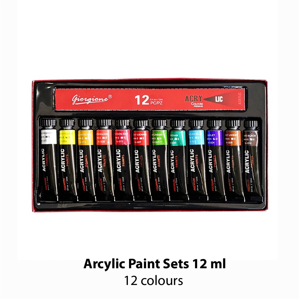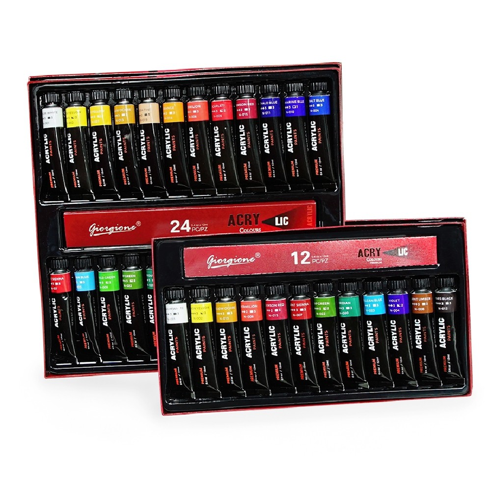 สีอะคริลิค ชุดสีอะคริลิค Giorgione ขนาดหลอด 12ml (ชุด 12 สี/ ชุด 24 สี) Acrylic Colour Set สีเพ้นท์ผ้า กระดาษ ผ้าใบ ไม้