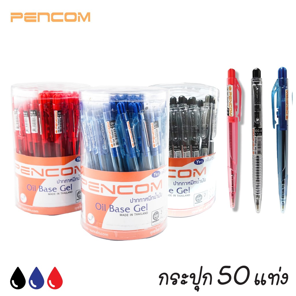 ปากกา ปากกาลูกลื่น ปากกาหมึกน้ำมัน PENCOM รุ่น OG-4 / OG-5 ขนาด 0.5 มม. (กระปุก 50 ด้าม) น้ำเงิน ดำ แดง [S24]