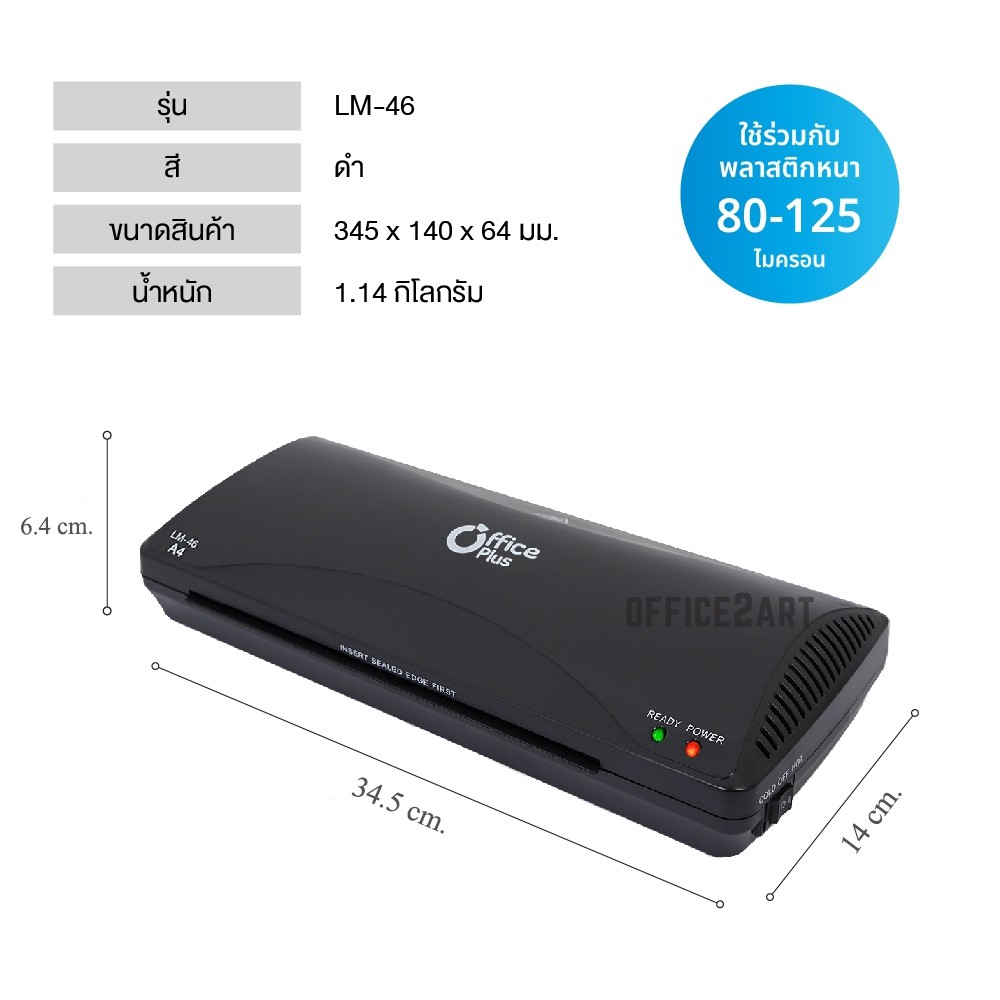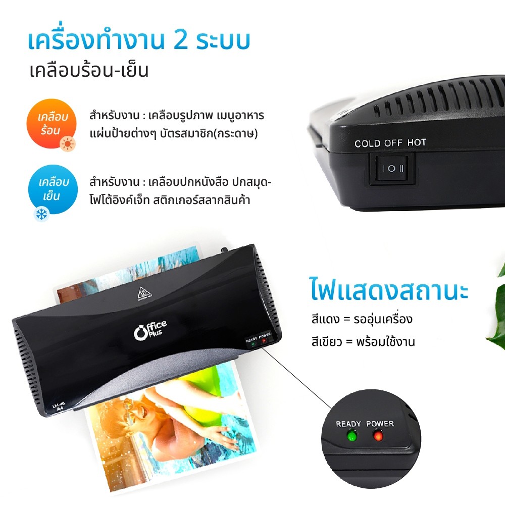 เครื่องเคลือบบัตร A4 Office Plus รุ่น LM-46 เครื่องเคลือบเอกสาร Officeplus รับประกัน 1 ปี Laminator