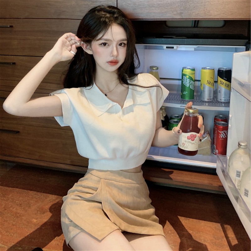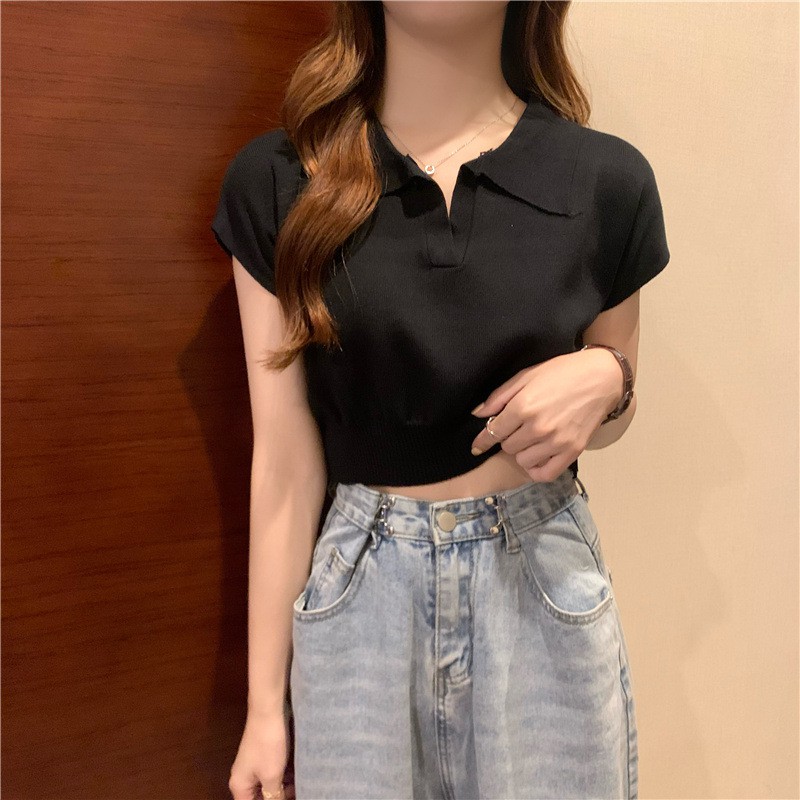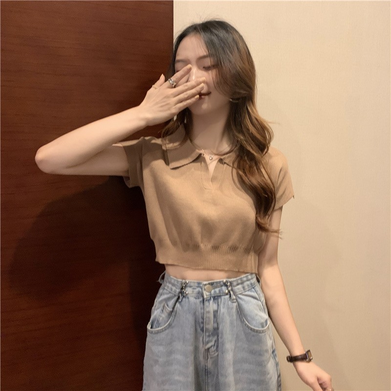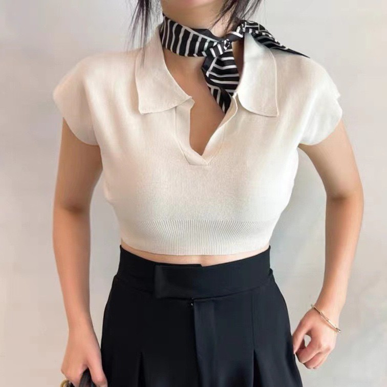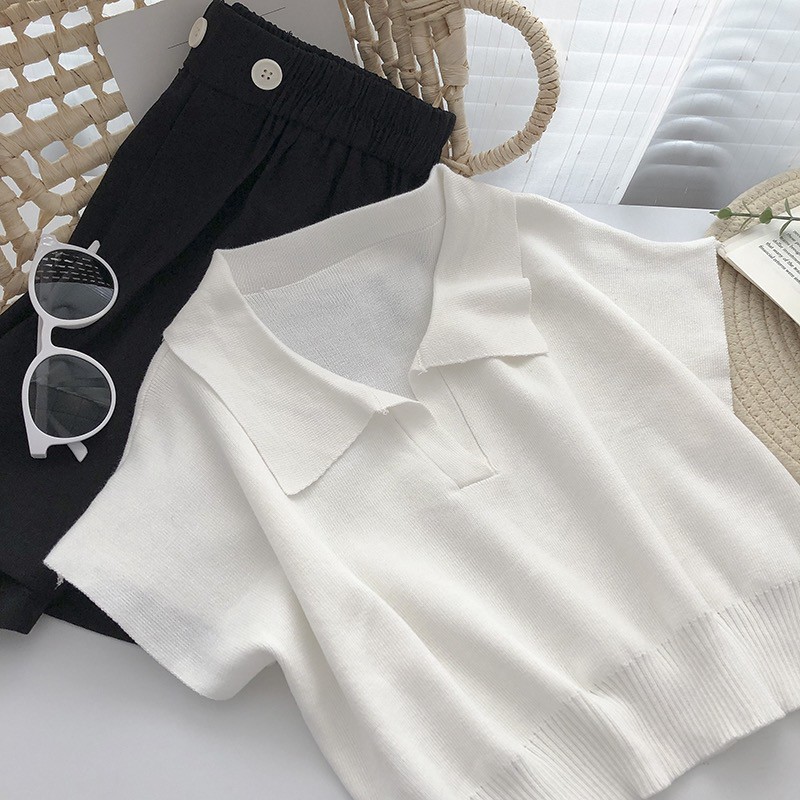 (พร้อมส่ง‼️) Knitted V-neck เสื้อคอวี เสื้อยืดสีพื้นเผู้หญิง