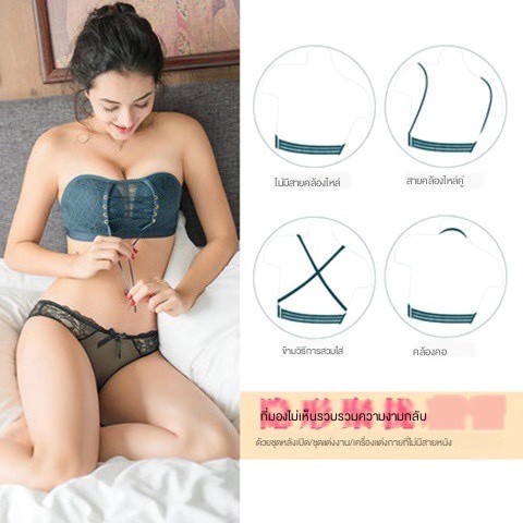 【ส่งสายคล้องไหล่ 】ชุดชั้นในฤดูร้อนหญิงไม่มีขอบลูกไม้บางเฉียบรวบรวมความงามกลับไม่มีสายคล้องไหล่ชุดชั้นในที่มองไม่เห็น