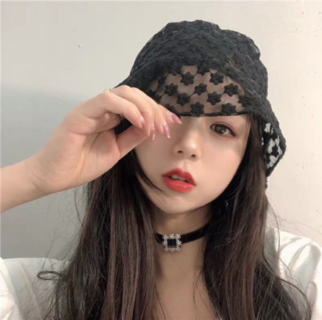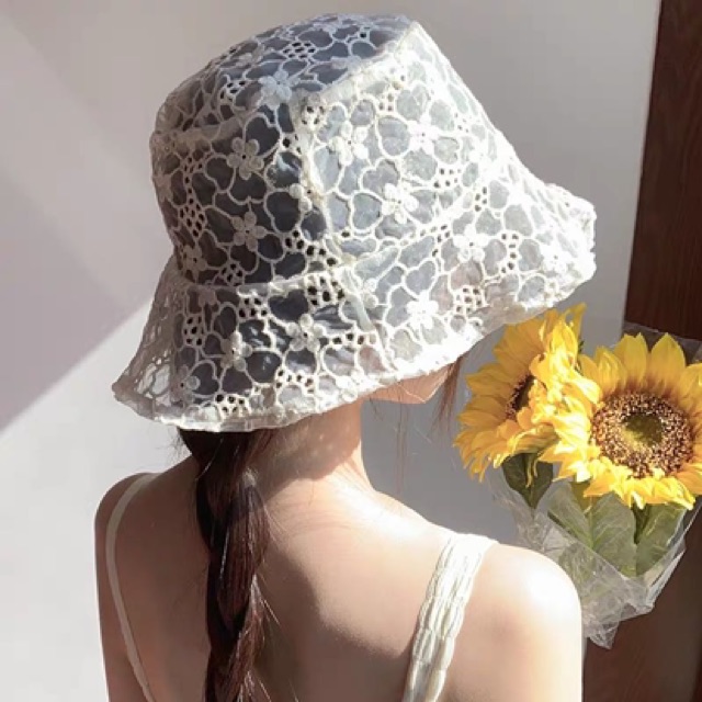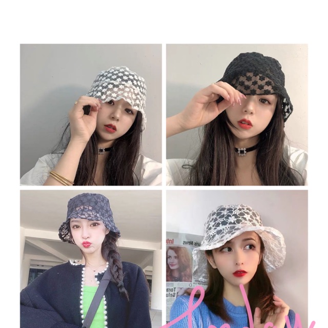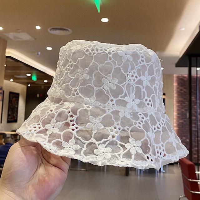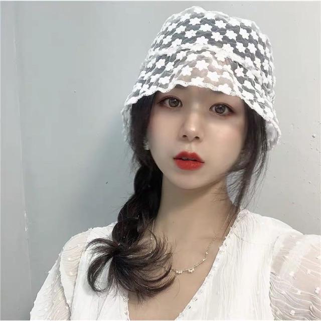 Hot หมวกบักเก็ต ลายดอกไม้ ลูกไม้