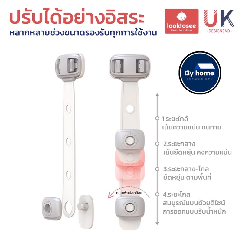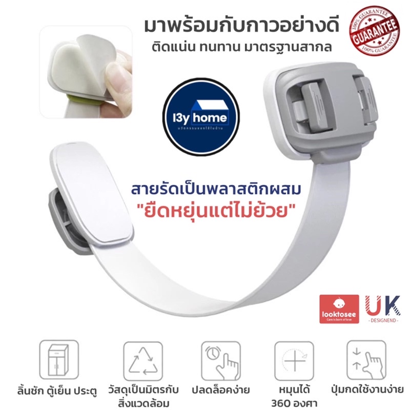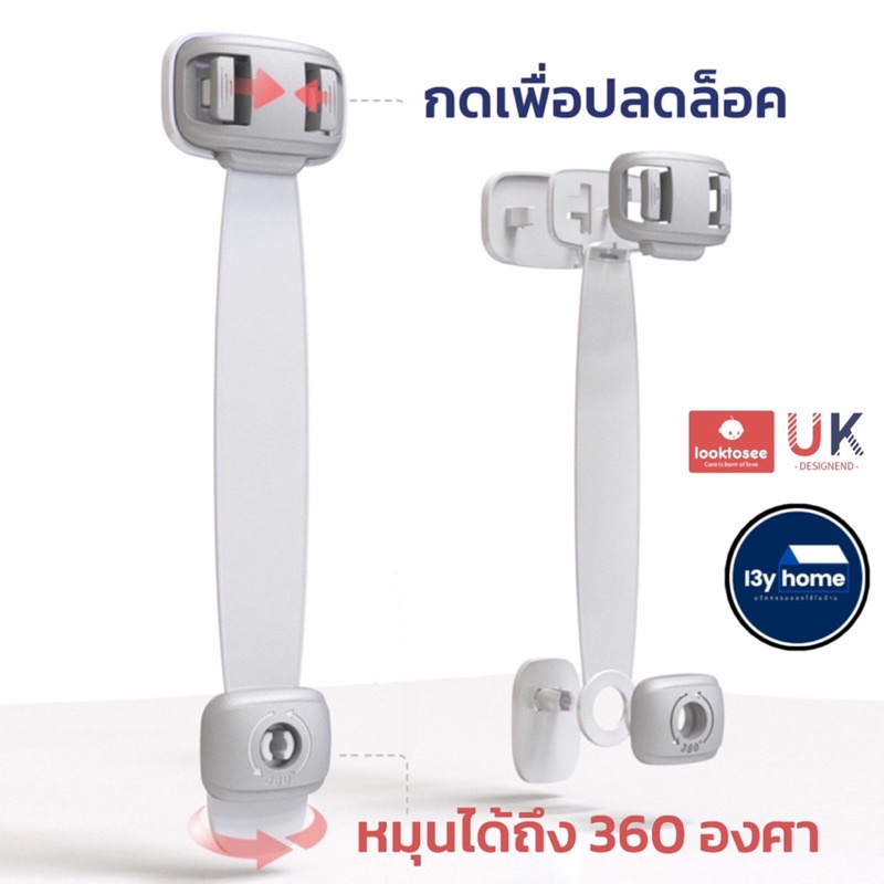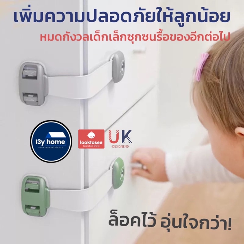 ที่ล็อคประตู ที่ล็อคตู้เย็น ตัวล็อคลิ้นชัก “รุ่นสายล็อค” เพื่อความปลอดภัยสำหรับเด็ก มาตรฐาน UK