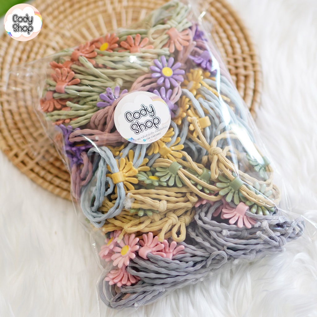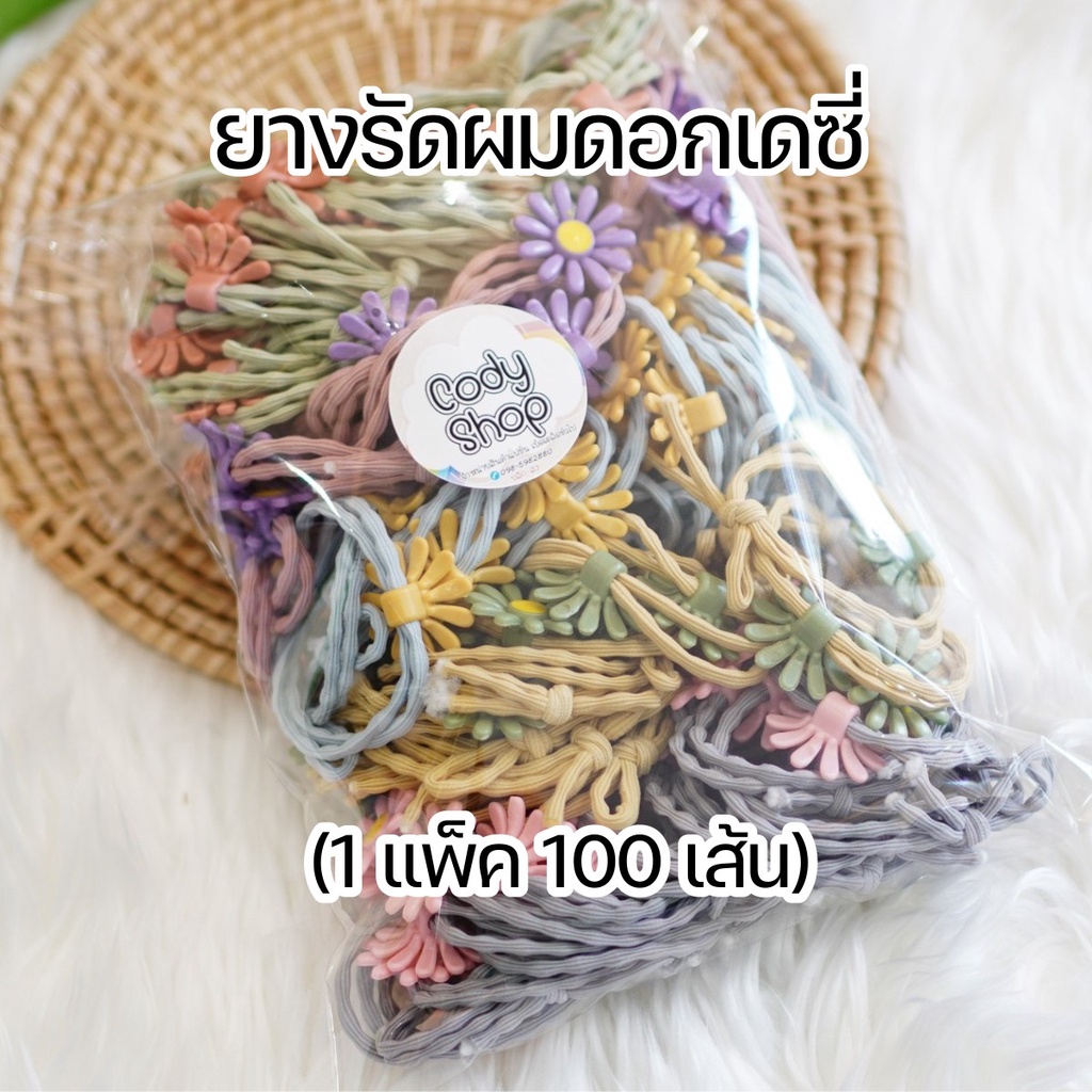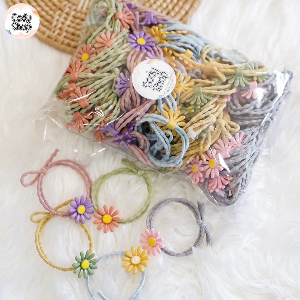 🌼ยางรัดผมดอกเดซี่ 1 แพ็ค 100 เส้น(คละสี) ❤ สไตล์เกาหลี พร้อมส่ง! 🔥
