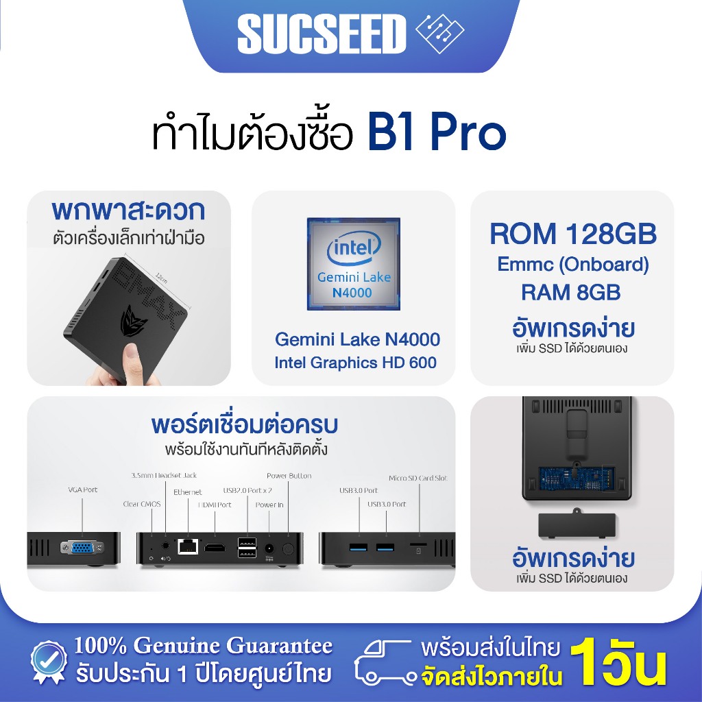 [ใหม่! Window 11] BMAX B1 Pro มินิ พีซี Window 11 Intel Celeron N4000 8GB RAM 128GB ROM WIFI 2.4GHz/5GHz รับประกันในไทย