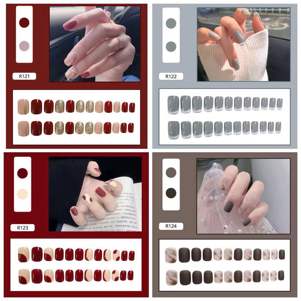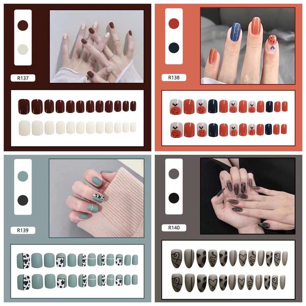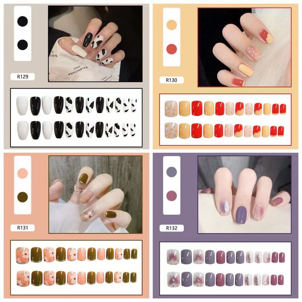 【ลายใหม่】เล็บปลอม กล่องละ 24 ชิ้น เล็บปลอมสำเร็จรูป อุปกรณ์ทำเล็บ ถูกสุด