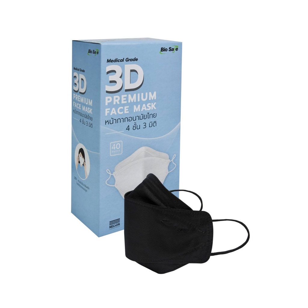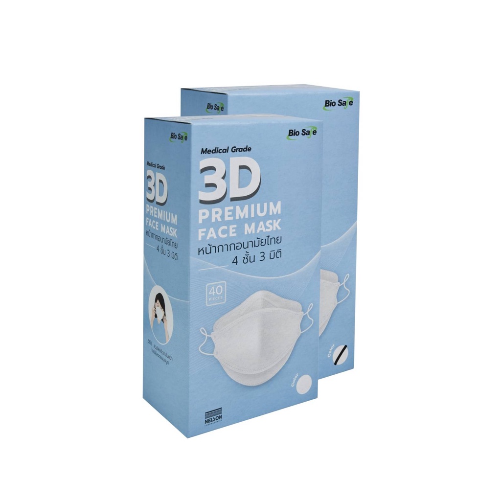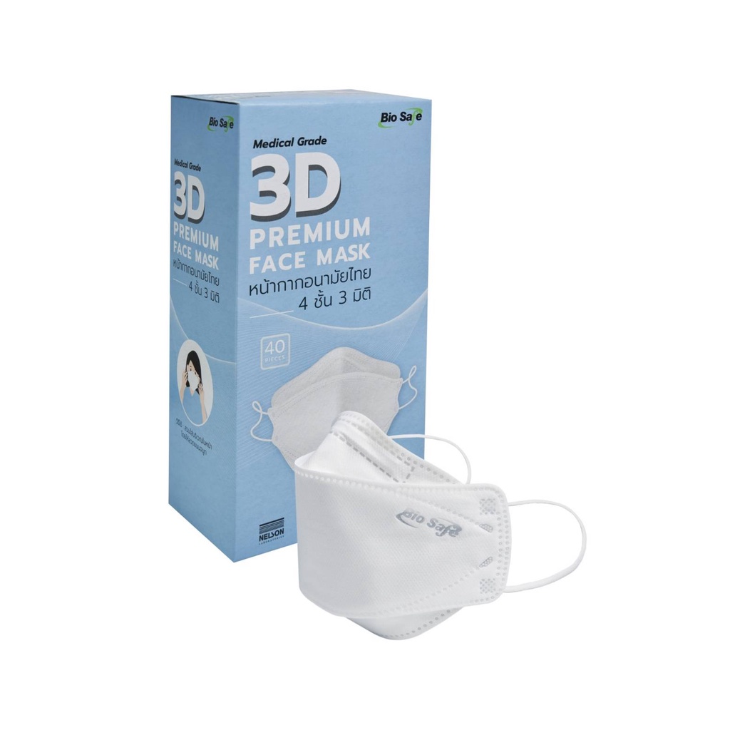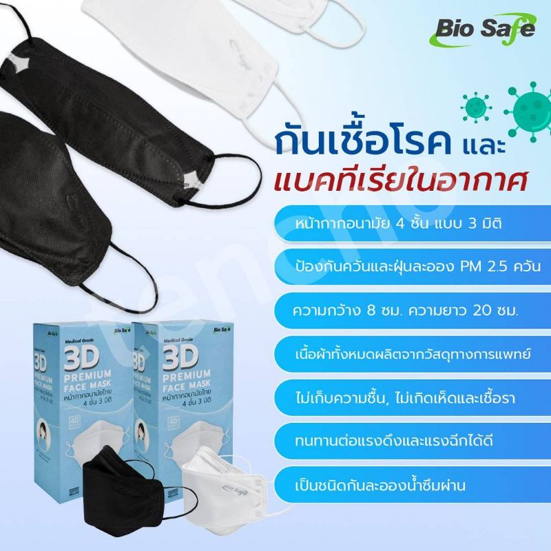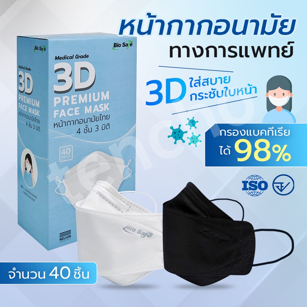 (ส่งฟรี)หน้ากากอนามัย 3Dหนา4ชั้น40ชิ้นต่อกล่อง หายใจสะดวกเกรดการแพทย์มีใบรับรองการผลิตไบโอเซฟ