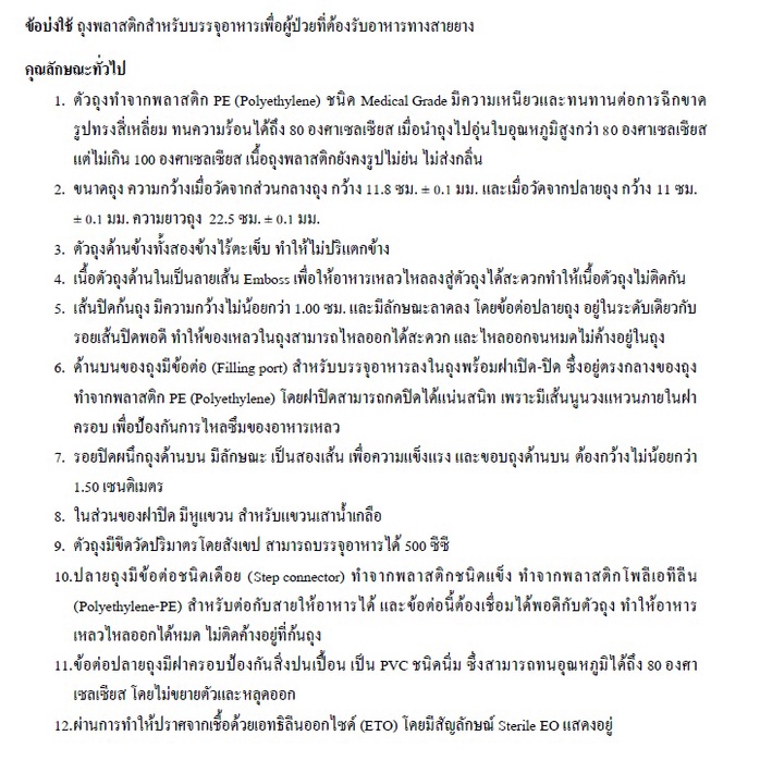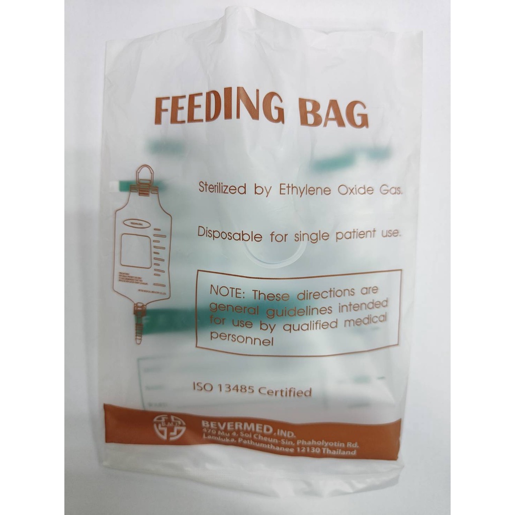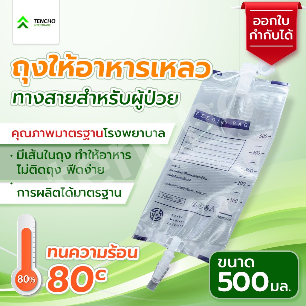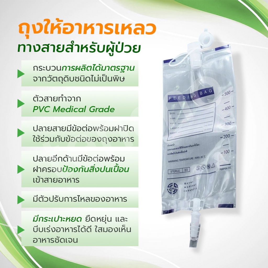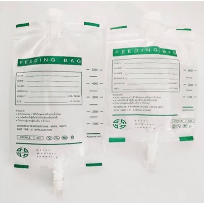 ถุงให ้อาหารเหลวทางสายสำหรับผู้ป่วย ขนาด 500 CC มาตรฐานโรงพยาบาล ทนความร้อน มีเส้นในถุง อาหารไม่ติดถุ