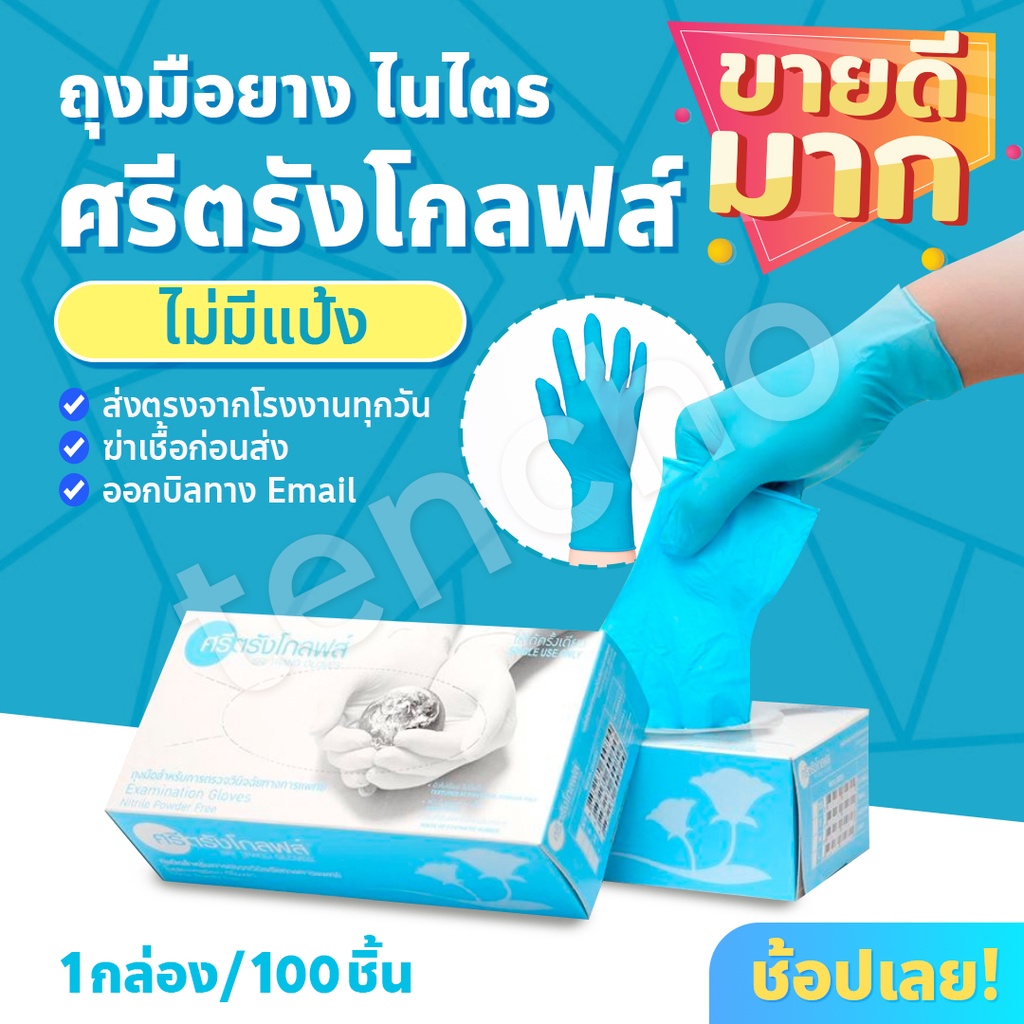 (ส่งฟรี)🌟ขายดีอันดับ 1!ถุงมือไนไตรศรีตรังสีฟ้า หนา 4.8 กล่องฟ้า ออกใบกำกับได้ ของแท้