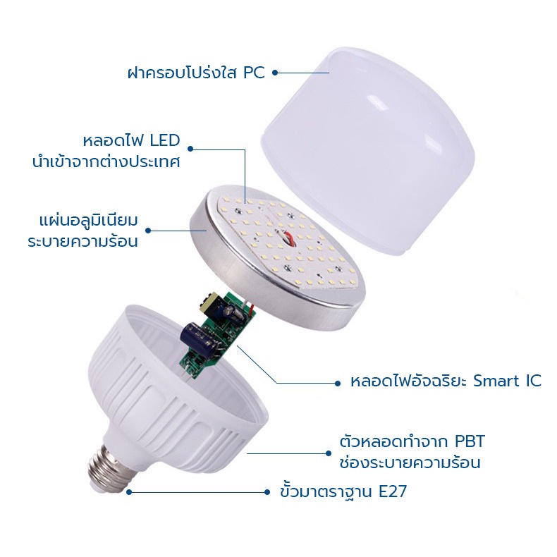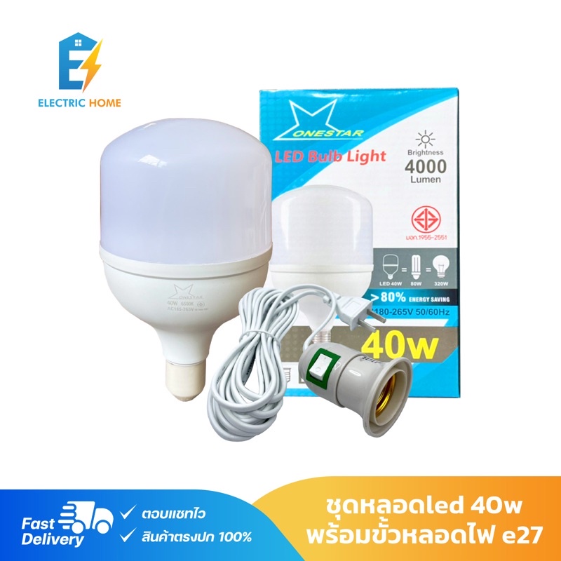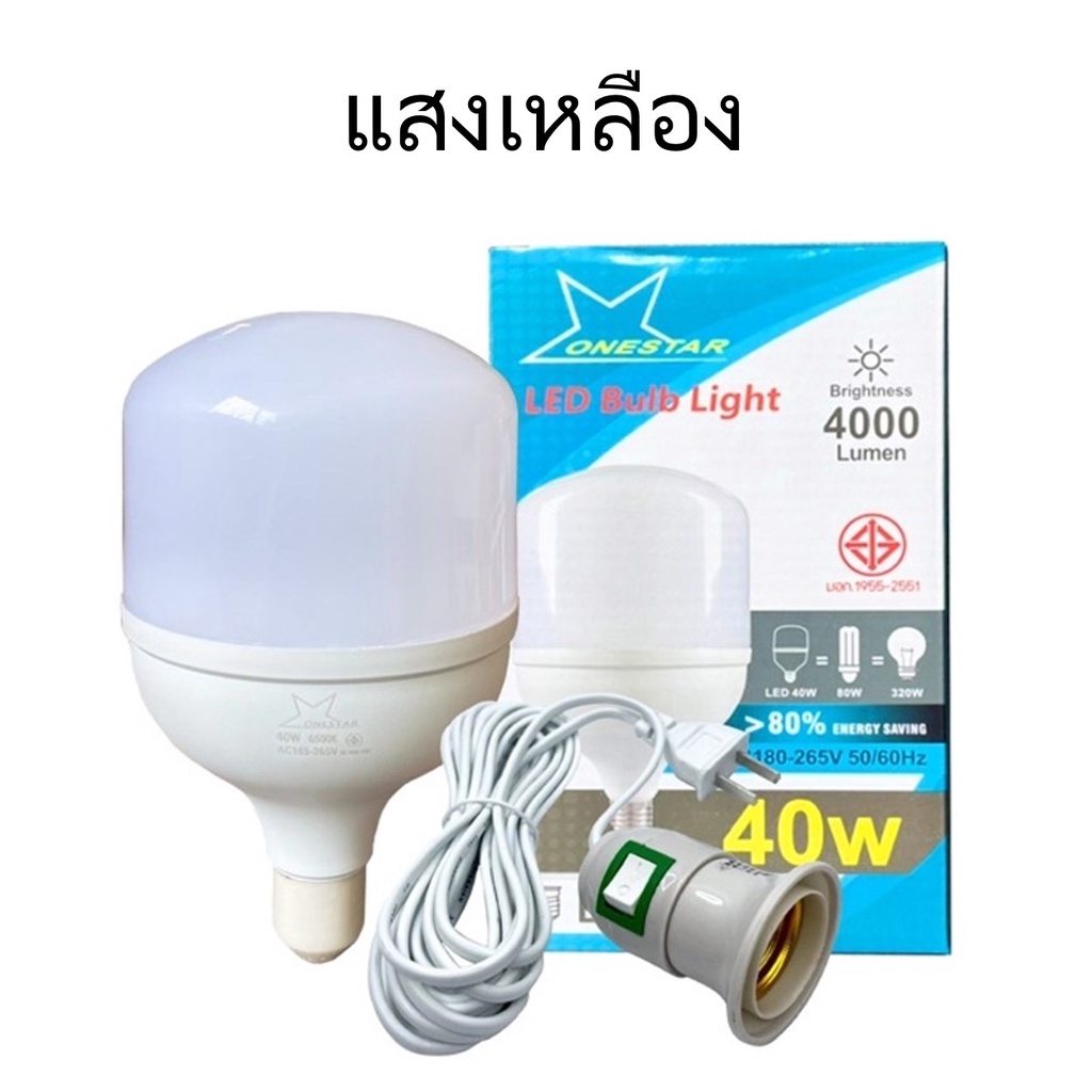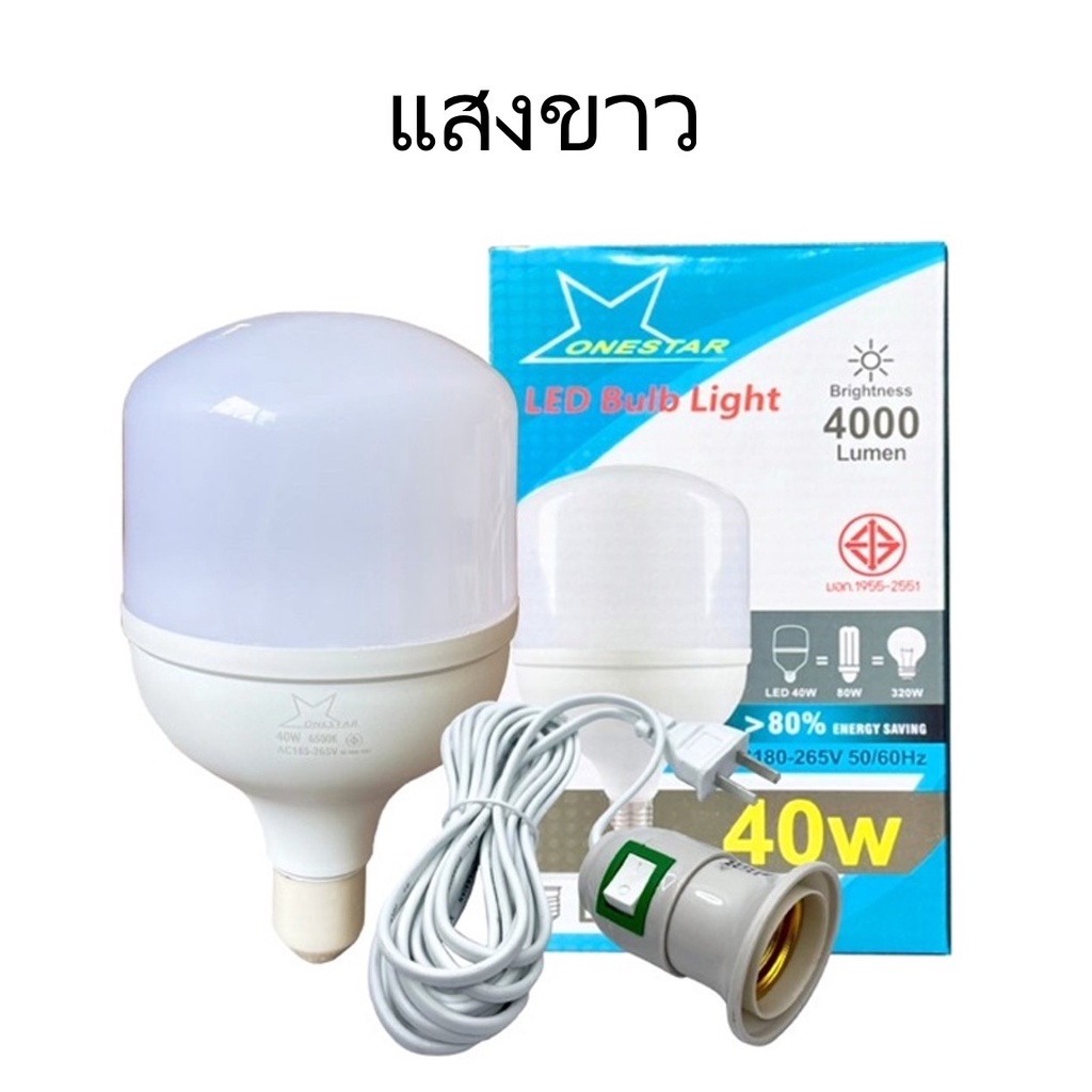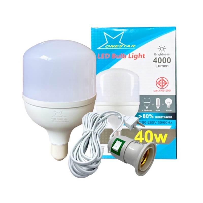 เซตหลอดไฟ ONESTAR LED 40W+ขั้วสายยาว 5 เมตร แสงขาว/เหลือง ใช้ตามบ้าน/อาคาร/แผงขายของตลาดนัด