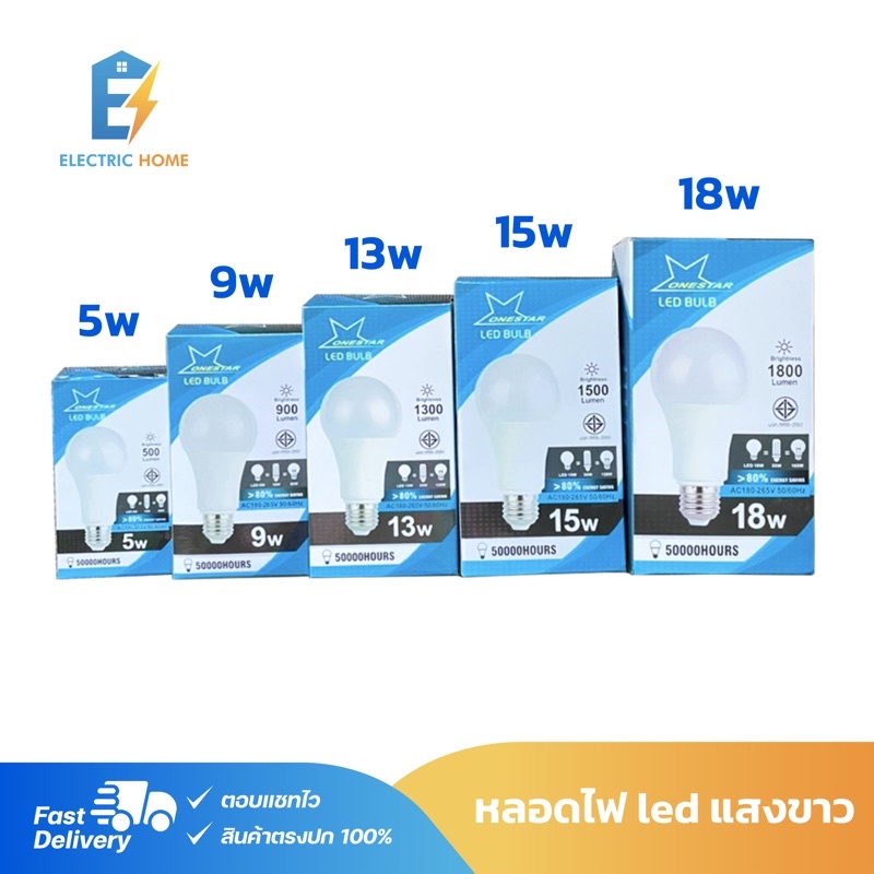 🔥ลด50% ใส่โค้ด INCM8L3🔥 หลอดไฟ LED แสงขาว 5W/9W/13W/15W/18W แสงเดย์ ยี่ห้อ Onestar