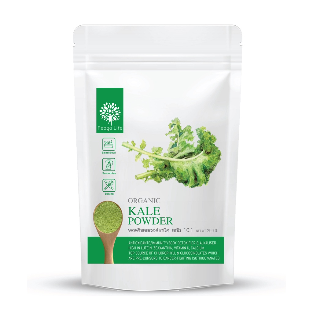ผงผักเคล ออร์แกนิค เข้มข้น 10x KALE POWDER ผง Superfood ยี่ห้อ Feaga Life 200 กรัม