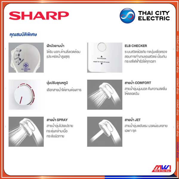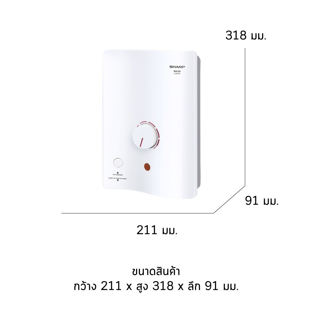 sharp เครื่องทำน้ำอุ่น 3500W ชาร์ป รุ่น WH-34 มีเบรกเกอร์กันดูดตัดกระแสไฟฟ้ารั่ว