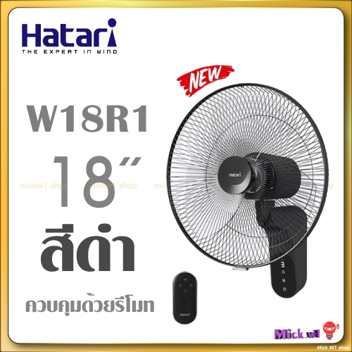 Hatari พัดลมติดผนัง มีรีโมท ฮาตาริ 18นิ้ว รุ่น W18R1 สีขาว และ สีดำ