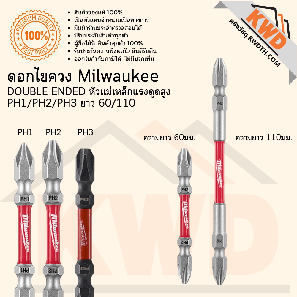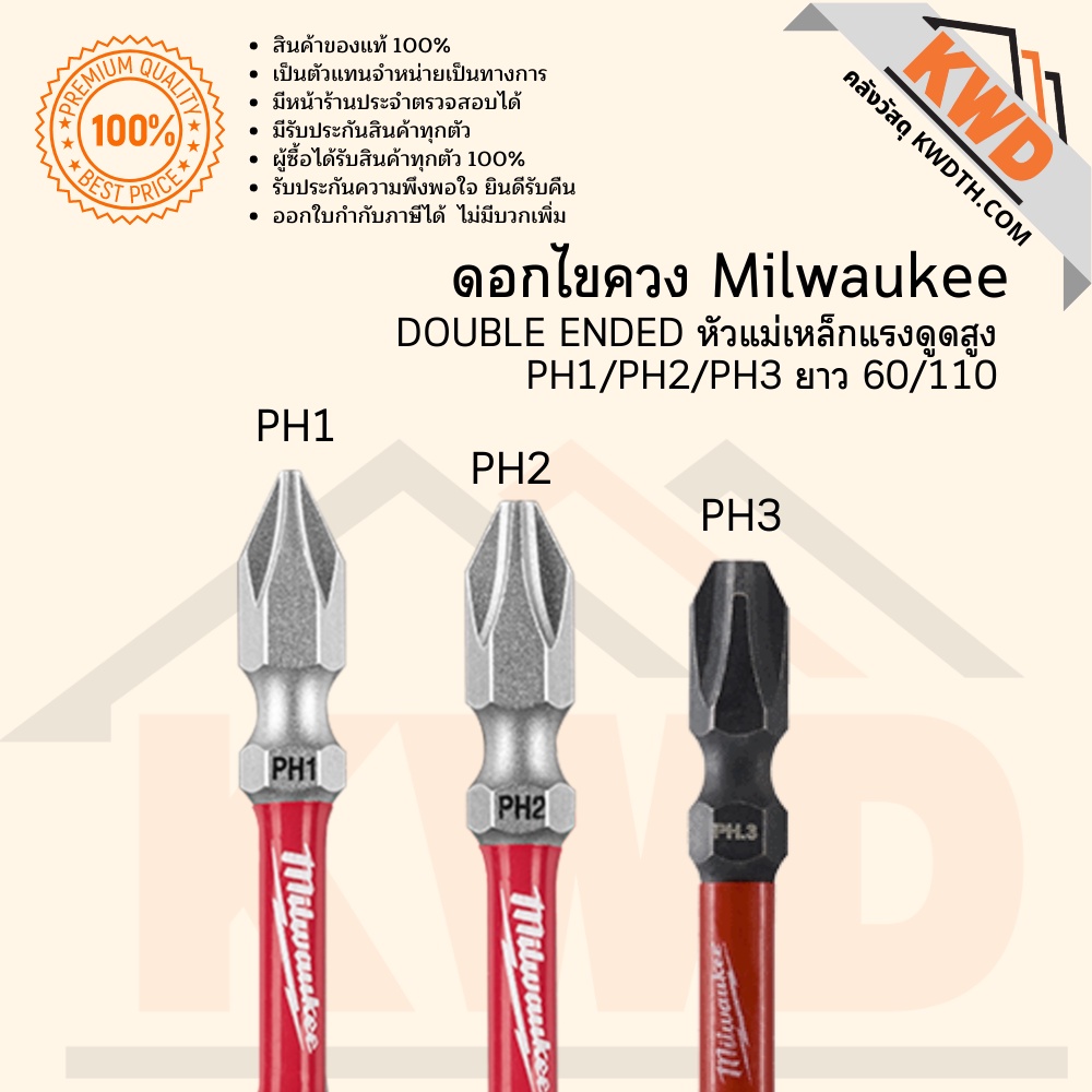 ดอกไขควงหัวแม่เหล็กแรงสุง Milwaukee Double Ended PH1/2/3 ยาว 65/110 ขายแยกตัว
