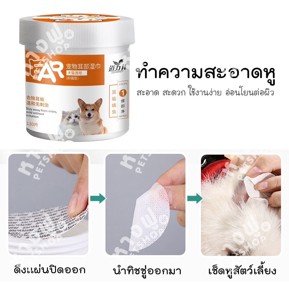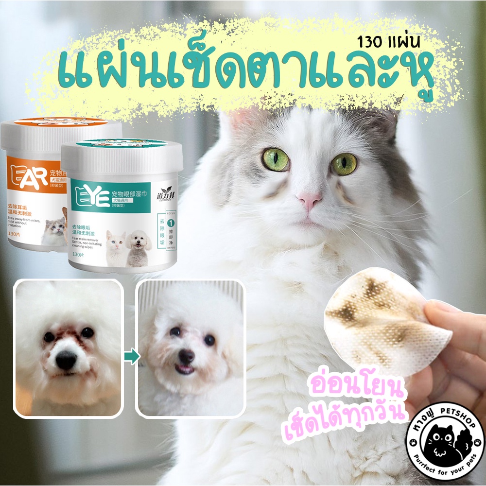 แผ่นเช็ดตาและหู สำหรับสัตว์เลี้ยง เช็ดคราบน้ำตาแมวและสุนัข เช็ดคราบหู