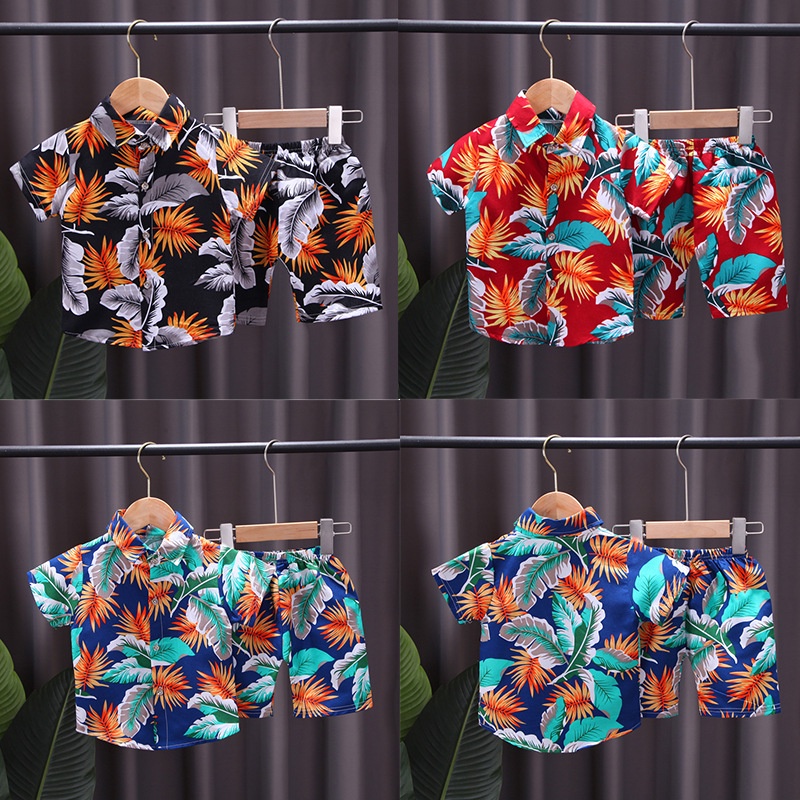 เสื้อยืดแขนสั้น และกางเกงขาสั้น สไตล์ชายหาด สําหรับเด็กผู้ชาย อายุ 0-4 ปี 2 ชิ้น