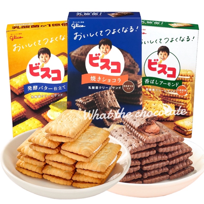 exp 07/2022 Glico Biscuit บิสกิตหน้าเด็กสอดไส้ครีมนม และครีมช็อคโกแลต