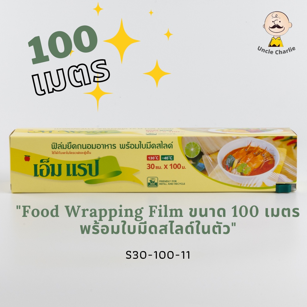 ฟิล์มถนอมอาหาร M Wrap พร้อมใบมีดสไลด์ หน้ากว้าง 30 ซม x ความยาว 100 ม.