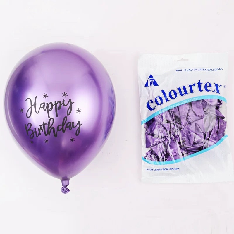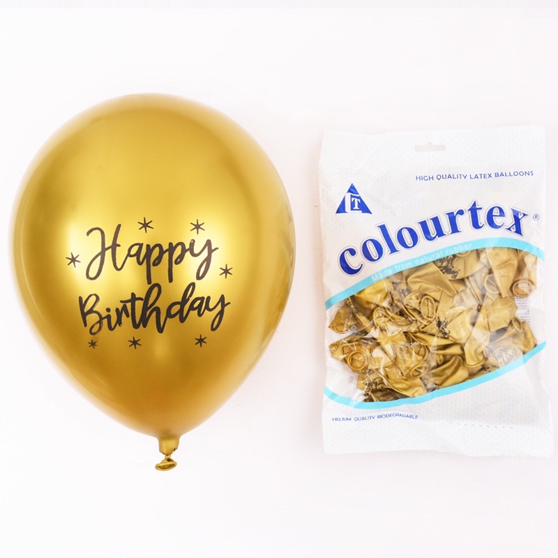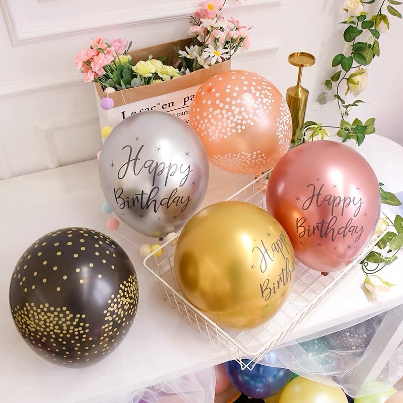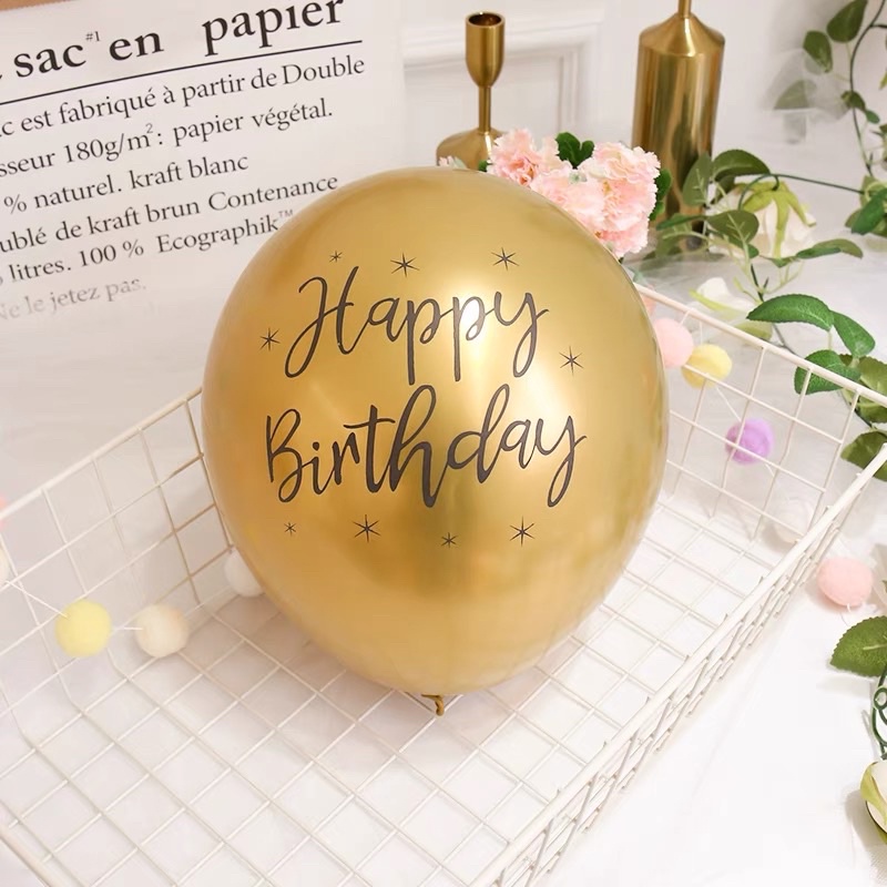 ลูกโป่งโครม ลูกโป่งวันเกิด 12 นิ้ว (5 ใบ) ยางพิมพ์ลาย Happy birthday พร้อมส่งจากไทย