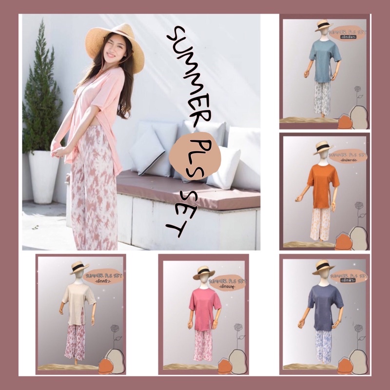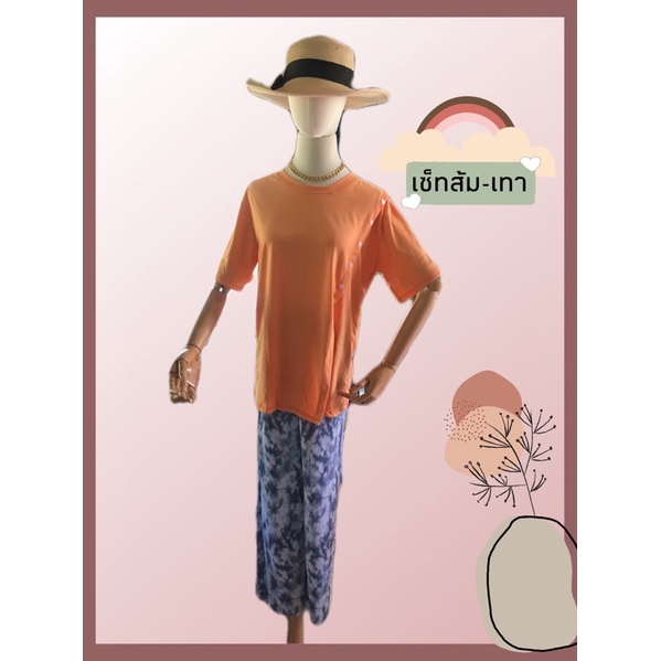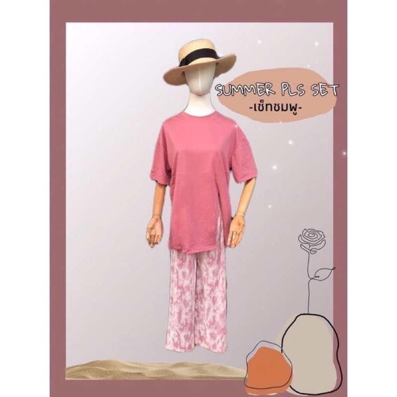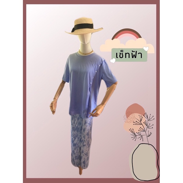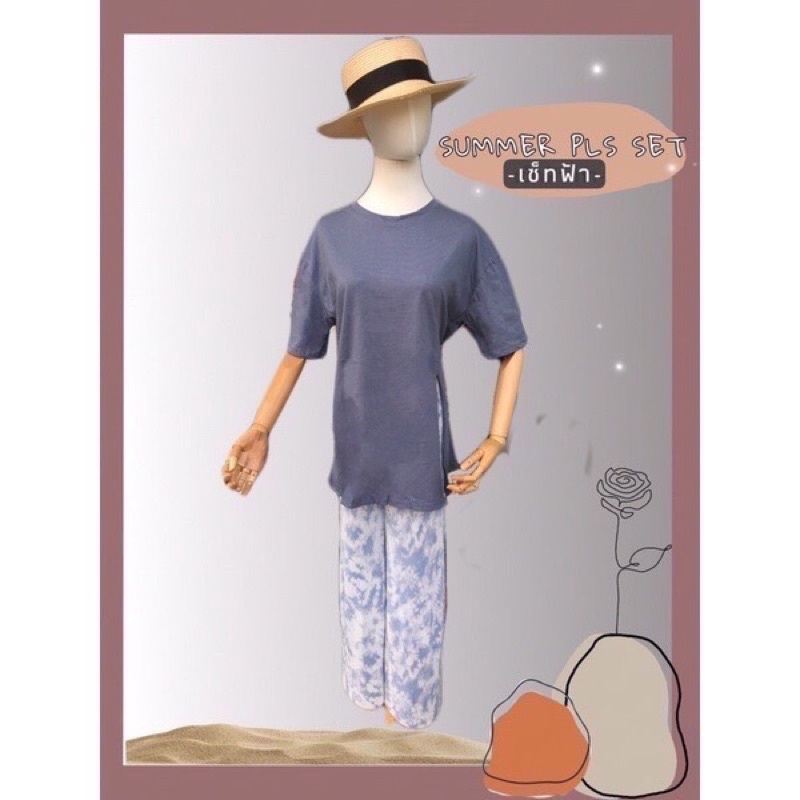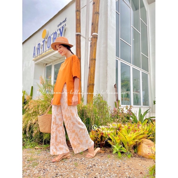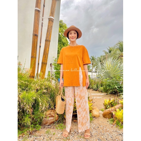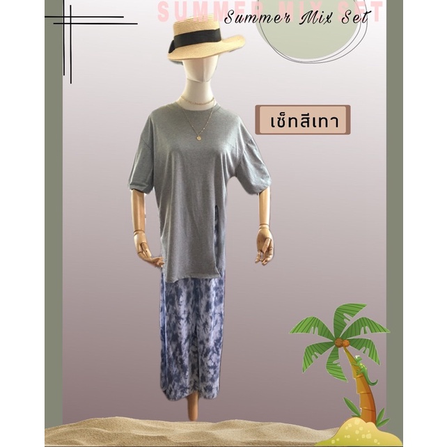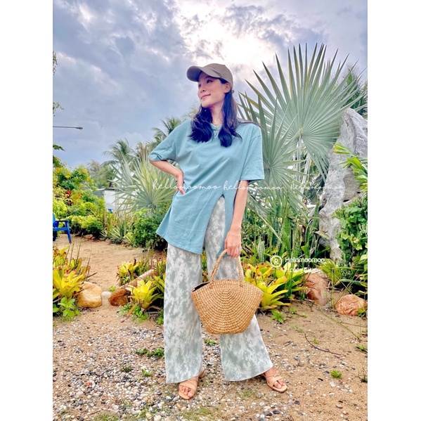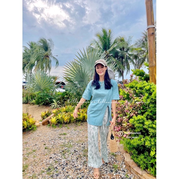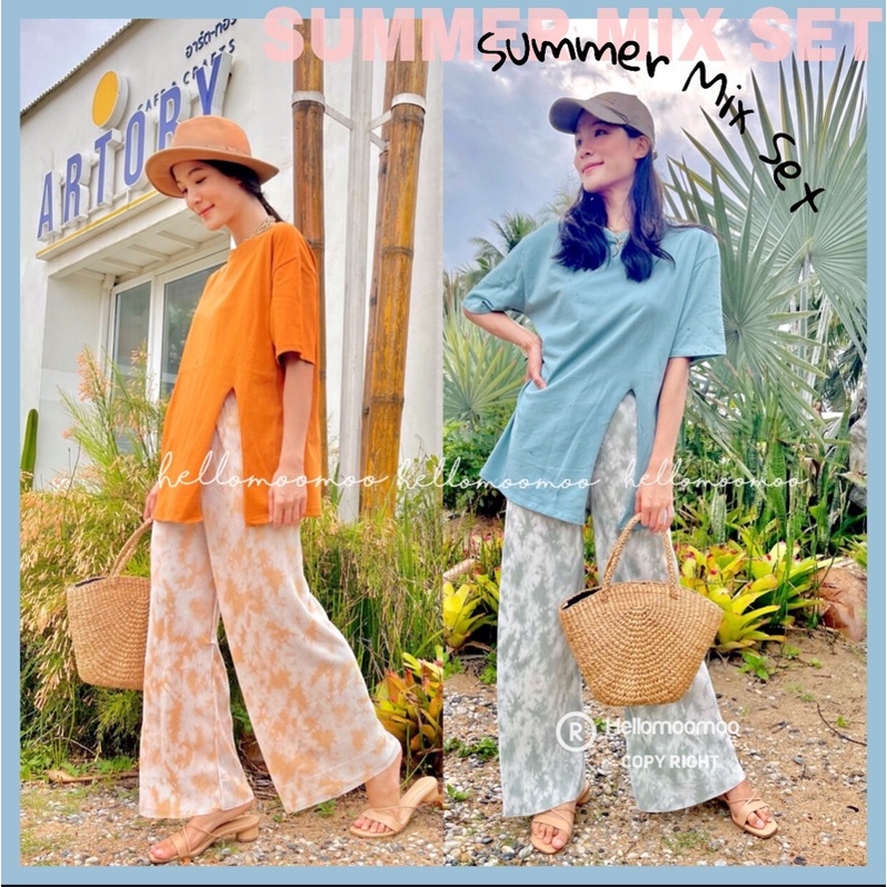 ชุดเซต2ชิ้น🌴เสื้อคอตตอนผ่าข้างพร้อมกางเกงพลีทมัดย้อม