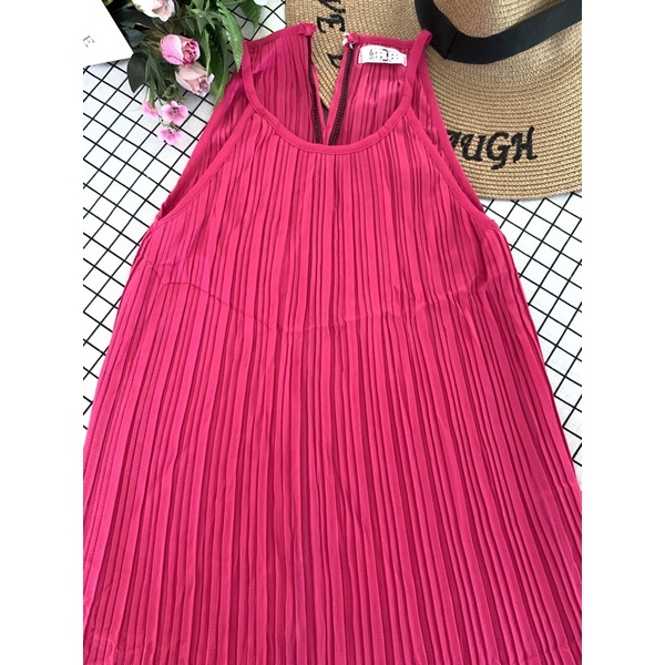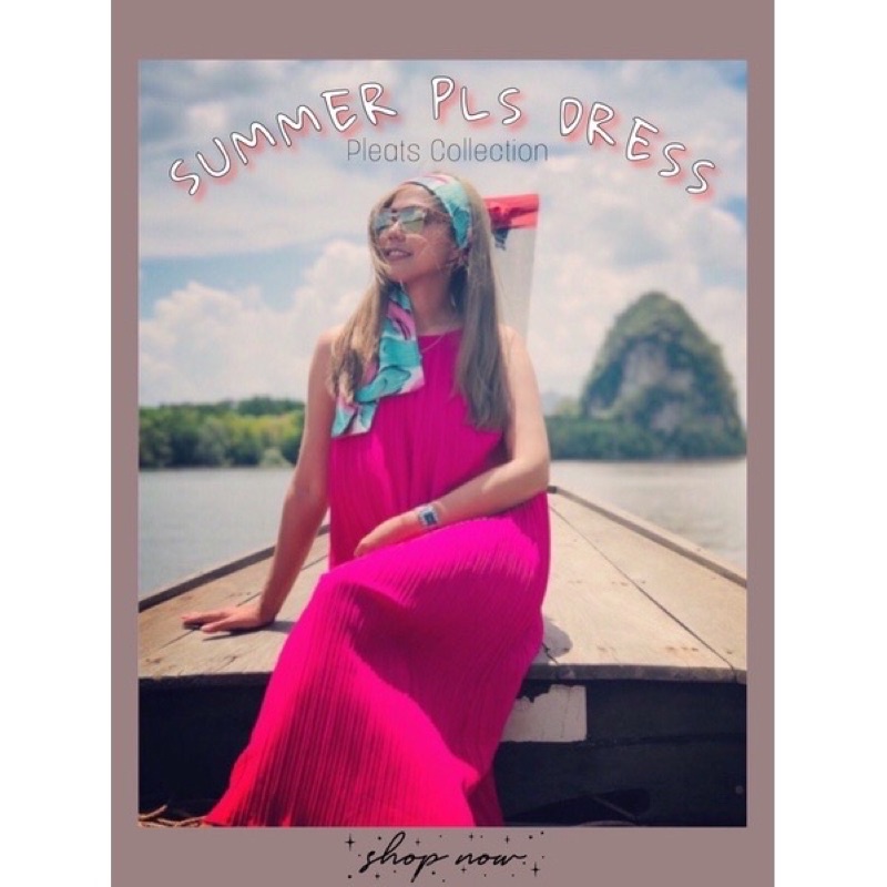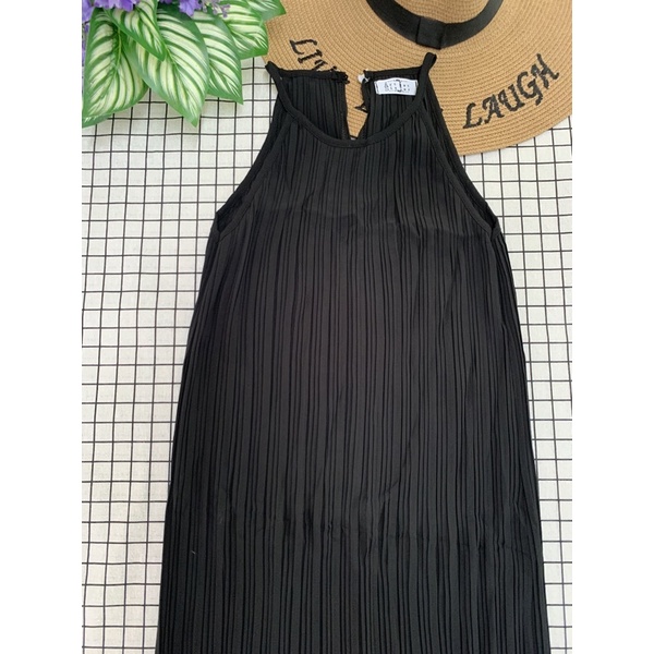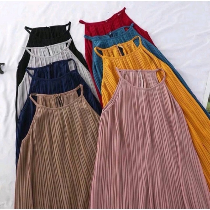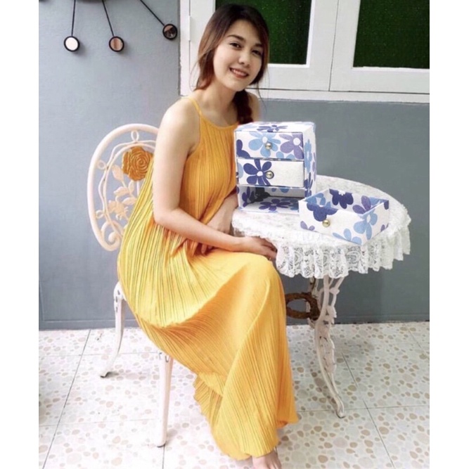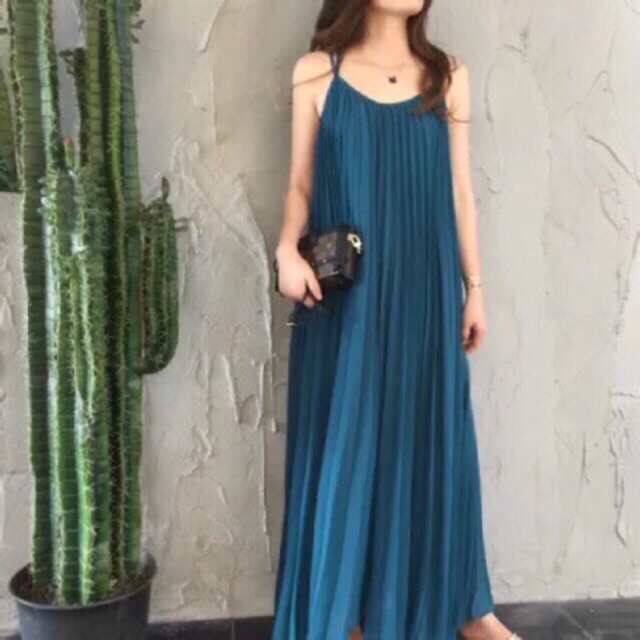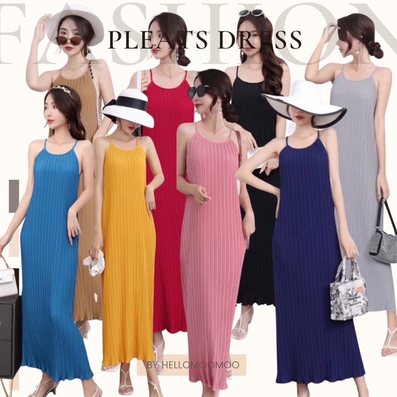 เดรสยาว🌈เดรสสายเดี่ยวผ้าชีฟองอัดพลีท