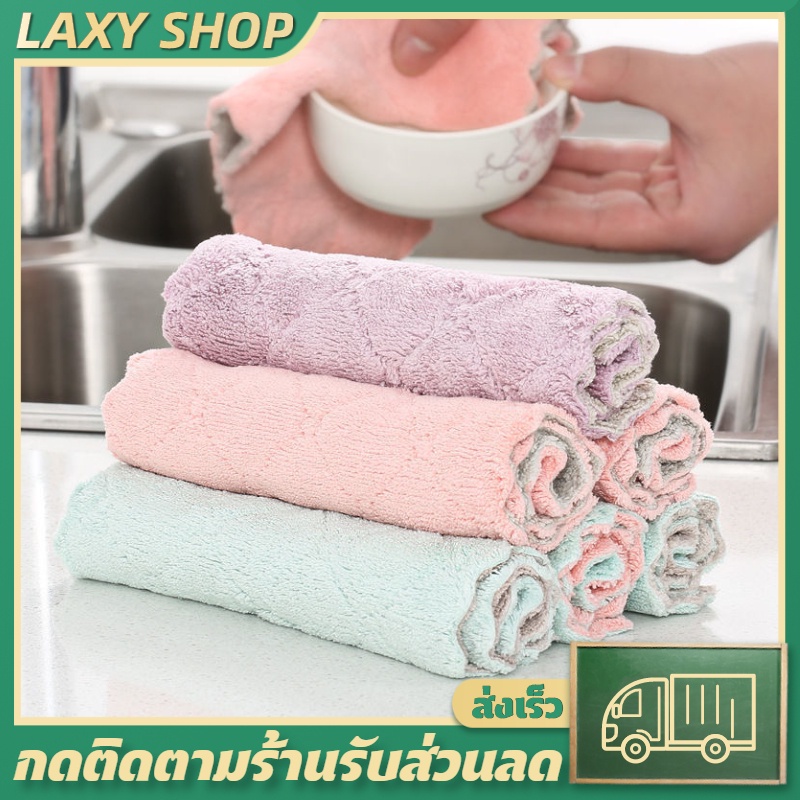 LAXY 🔥ถูกสุด🔥 ผ้าเช็ดจาน ผ้าขี้ริ้ว ผ้าในครัว ซึมซับน้ำได้ดีมากๆ เร็ว ทันใจมากคะ ซักทำความสะอาดง่าย แห้งเร็ว