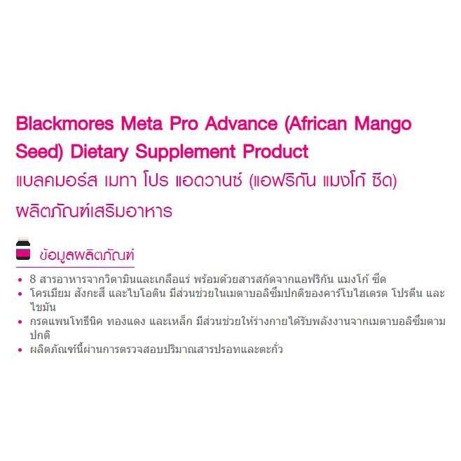 Exp.5/2025 ภาวะน้ำหนักเกิน (30 เม็ด) Blackmores Meta pro Advance แบลคมอร์ส เมทา โปร แอดวานซ์