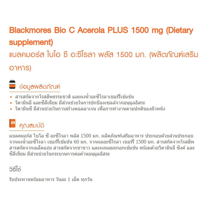 Exp.5/2026 (40 เม็ดแถม 15 เม็ด) Blackmores Bio C Acerola Plus 1500mg วิตามินซี ไบโอ ซี อะซีโรลา พลัส 1500 มก.