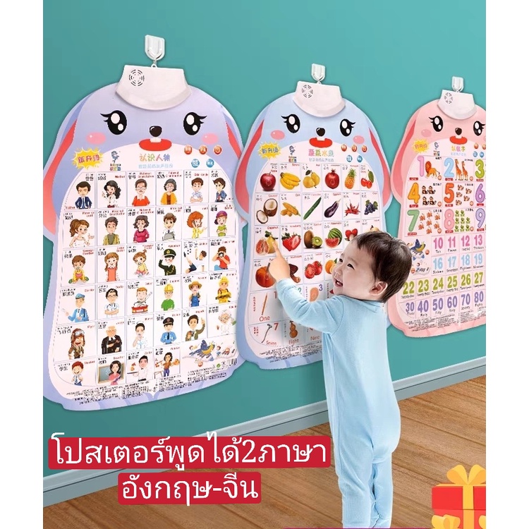 โปสเตอร์คำศัพท์ 2 ภาษา แถมฟรีที่แขวนติดผนัง ของเล่นโปสเตอร์พูดได้