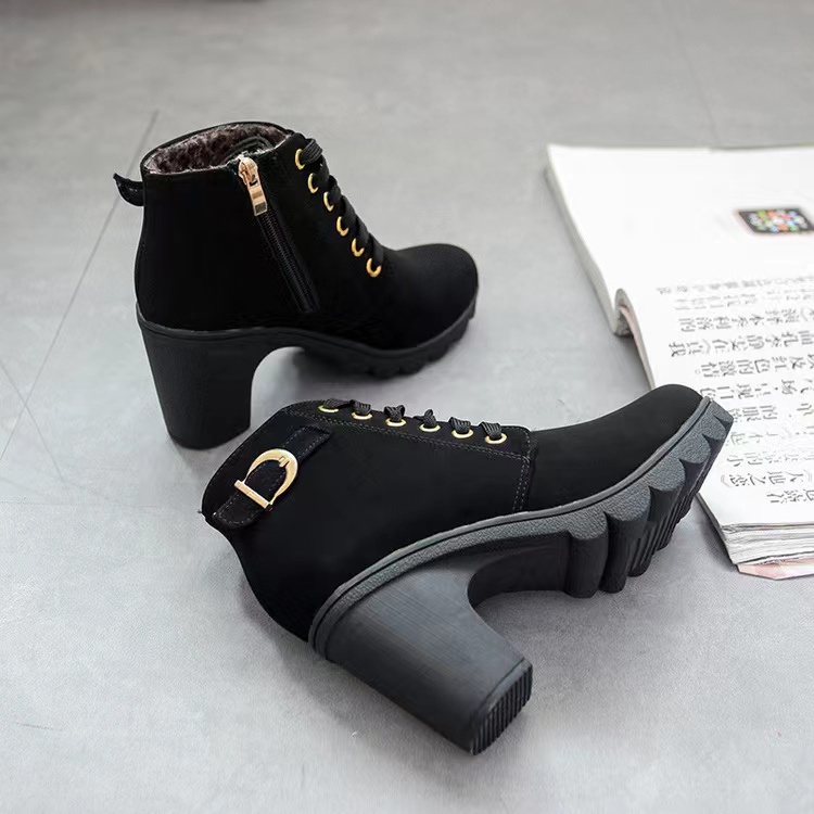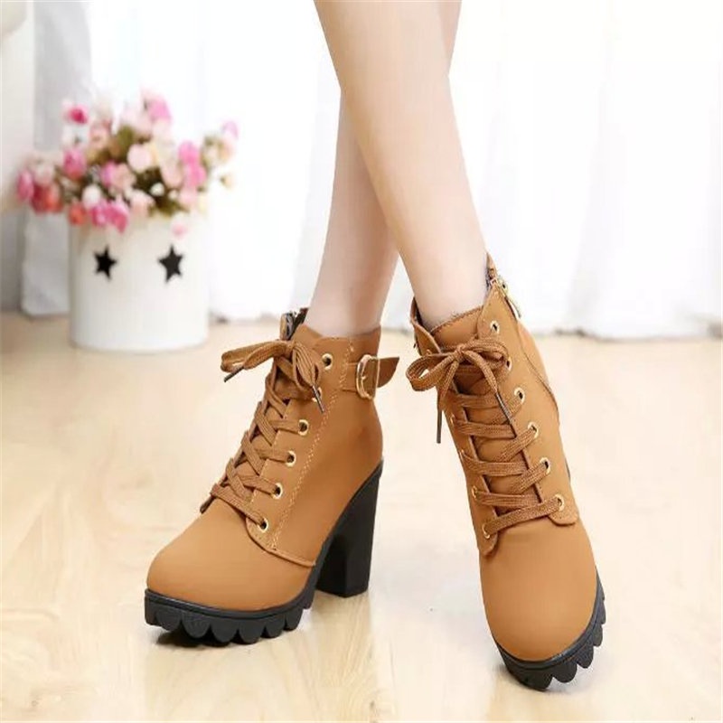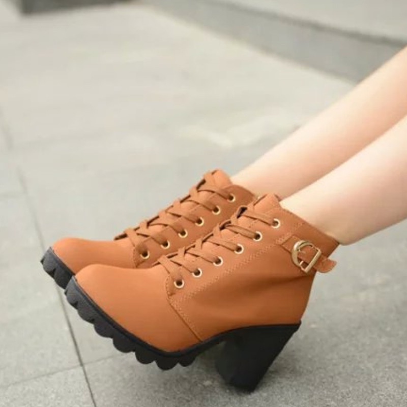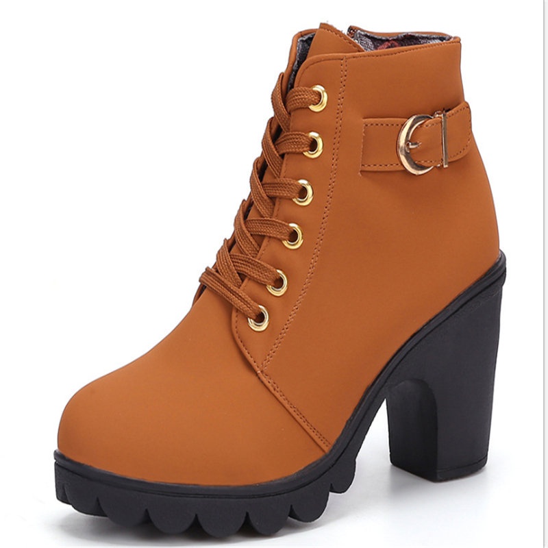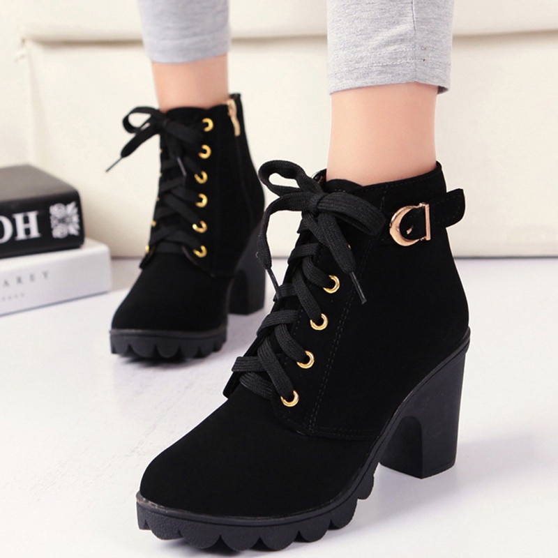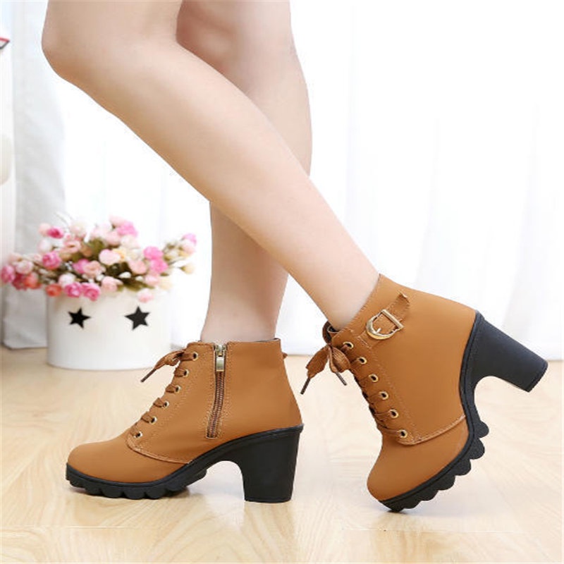 🎀สปอตสินค้า🎀รองเท้าบูทผู้หญิง ส้นสูง ข้อเท้า 2 สี รองเท้าหนัง บูทเรียบหรู ขนาด 36-42