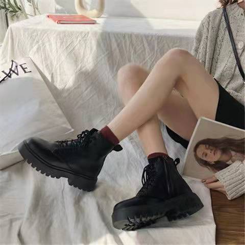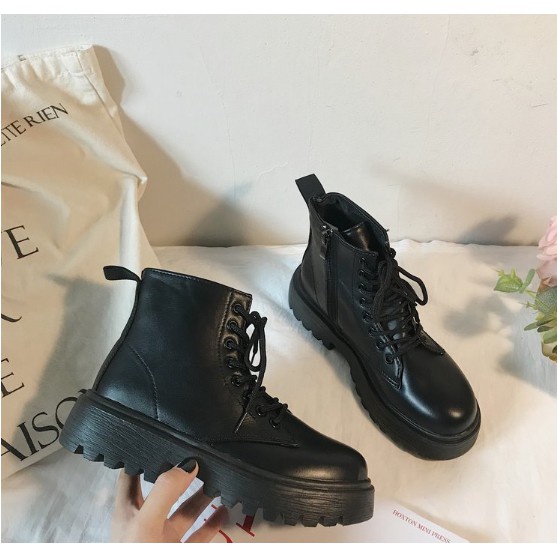 ✨พร้อมส่ง. สูง 3cm✨รองเท้าบูทผู ้หญิง รองเท้าบูทมาร์ติน ส้นหนา กันลื่น หัวกลม มีซิปด้านข้างสไตล์อังกฤษใหม่