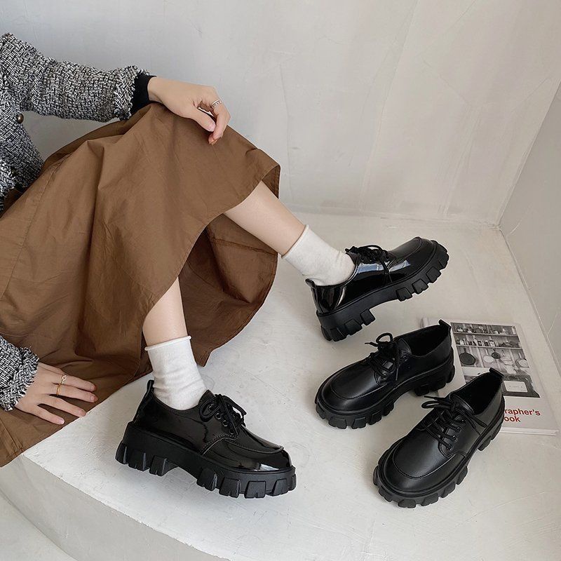 🎀จัดส่งตอนนี้🎀 รองเท้าหนังผู้หญิงสไตล์อังกฤษใหม่ ใหม่ ก้นหนา สไตล์มหาลัย ผูกเชือก รองเท้าผู้หญิง