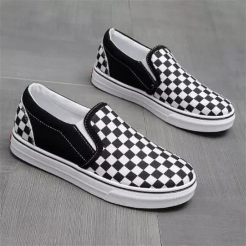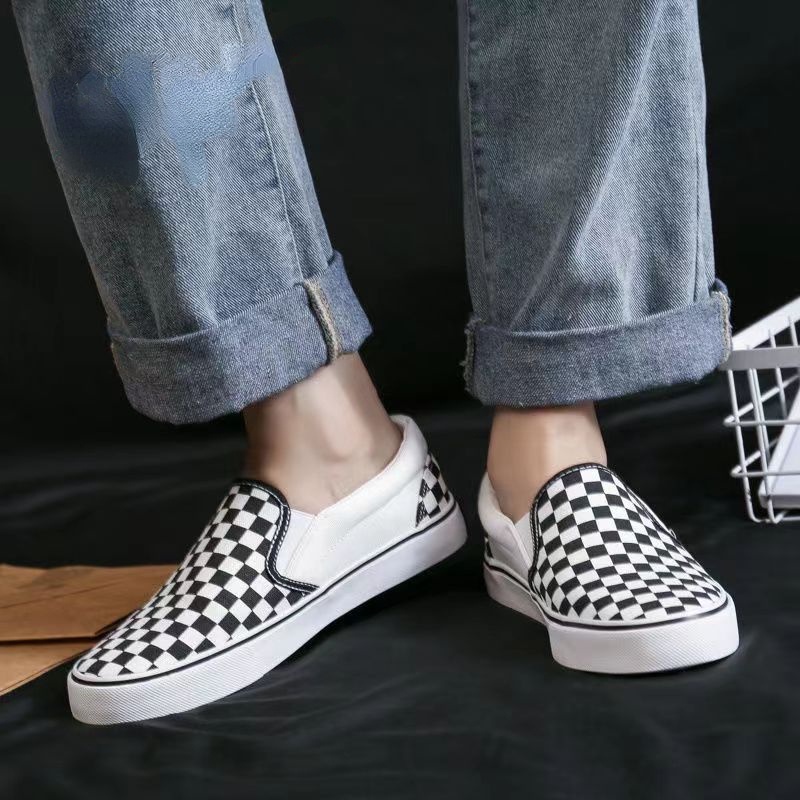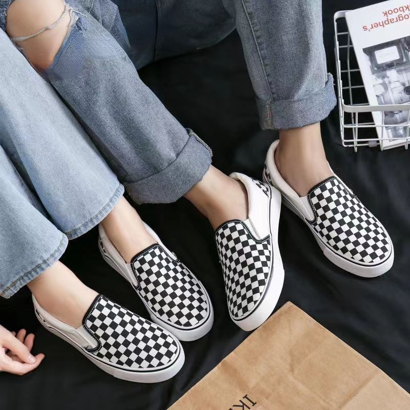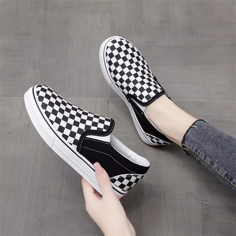WALKING 👟รองเท้าสลิปออนผู้หญิงคลาสสิก รองเท้าสลิปออนลายสก็อตขาวดำที่นุ่มสบาย ราคาต่ำสุดจัดส่งไว 36-44