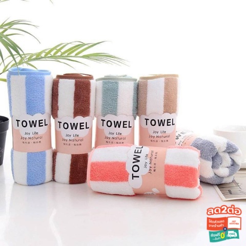 (ใส่โค้ดลดเพิ่ม MTDPACK77) ผ้าเช็ดผม ขนเป็ด ลายขวาง ขนาด 35 x 75 ซม. ผ้าขนหนู